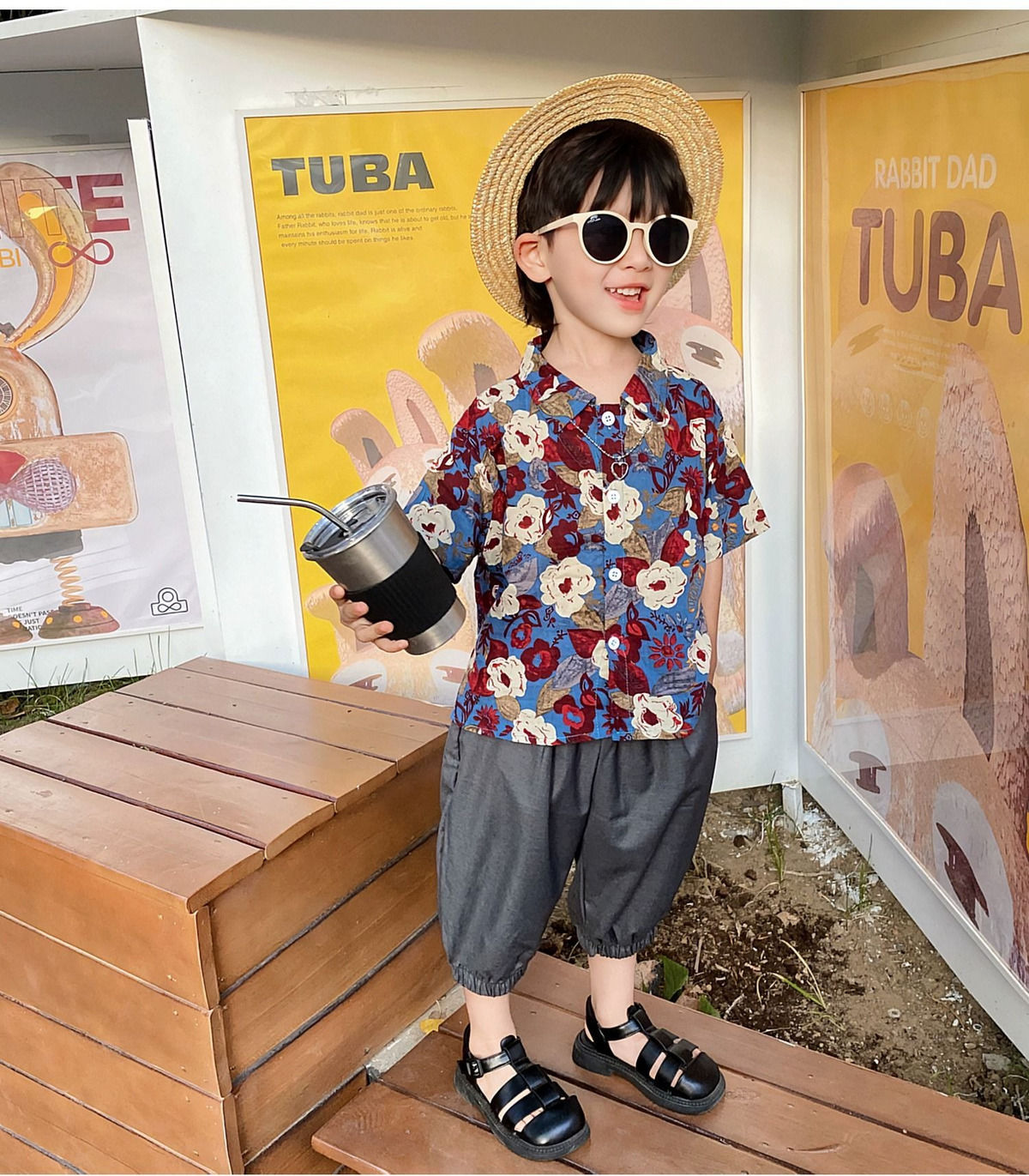 | Color | Picture color floral shirt | Suitable for height | 90cm |