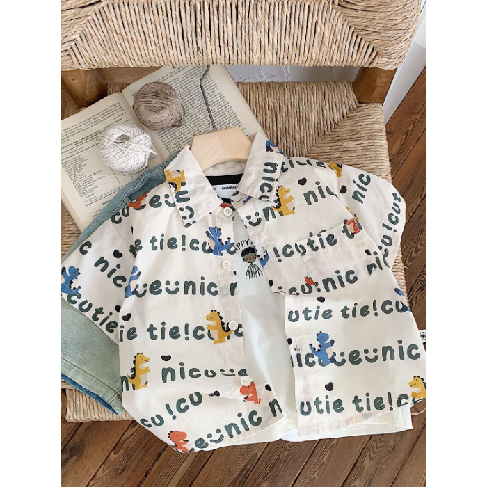2026 New Style Children's Short-Sleeve Loose Summer Shirt Boys' Floral Shirt Stylish Versatile Collared Shirt Trendy