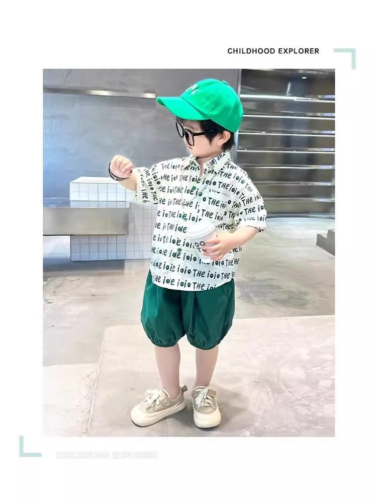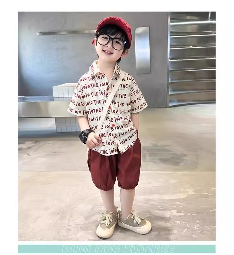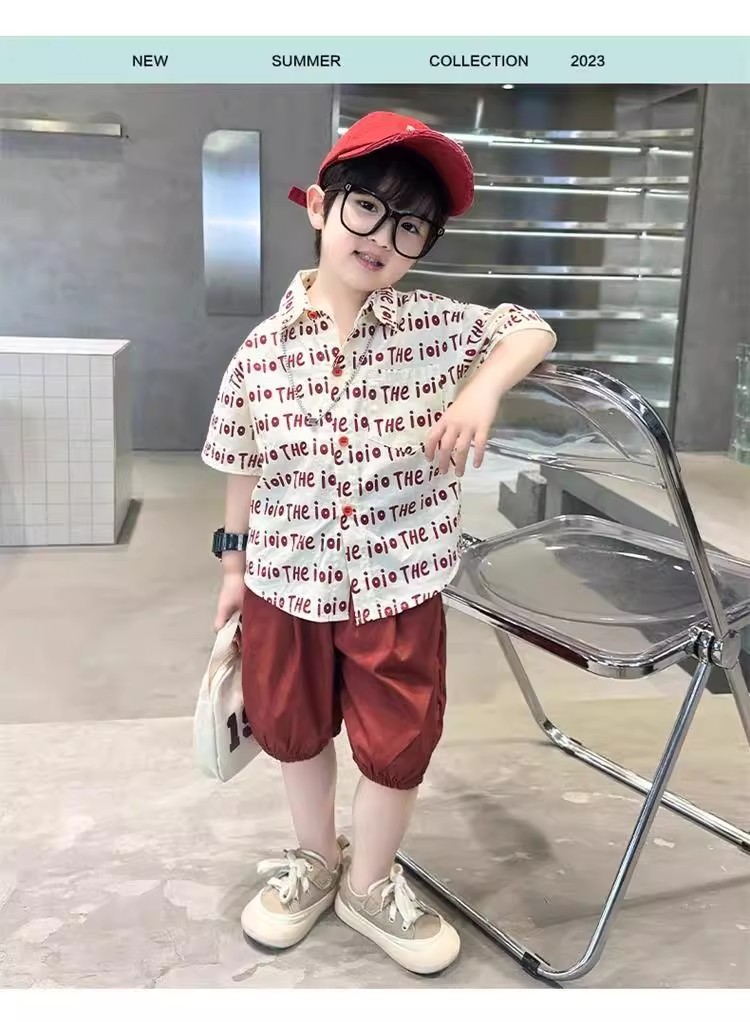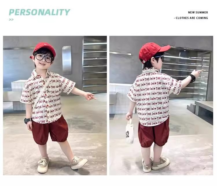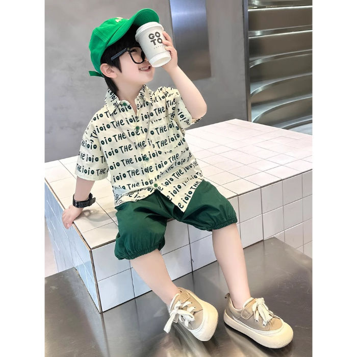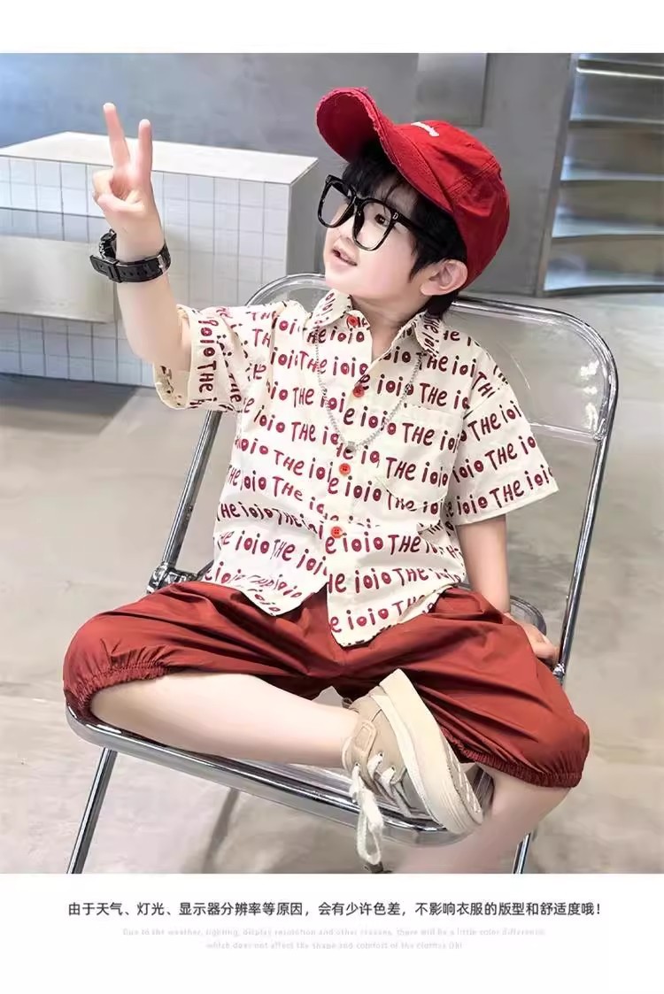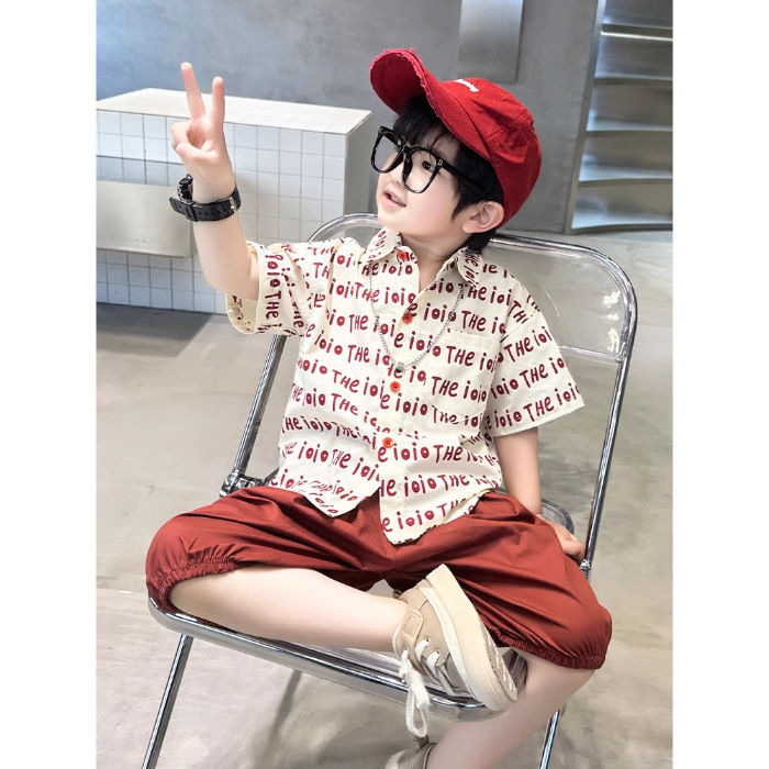 Baby Casual Short-Sleeved Shirt 2026 Summer Thin Kidsren's Letter-Printed Shirt Boys Summer Shirt Short-Sleeved