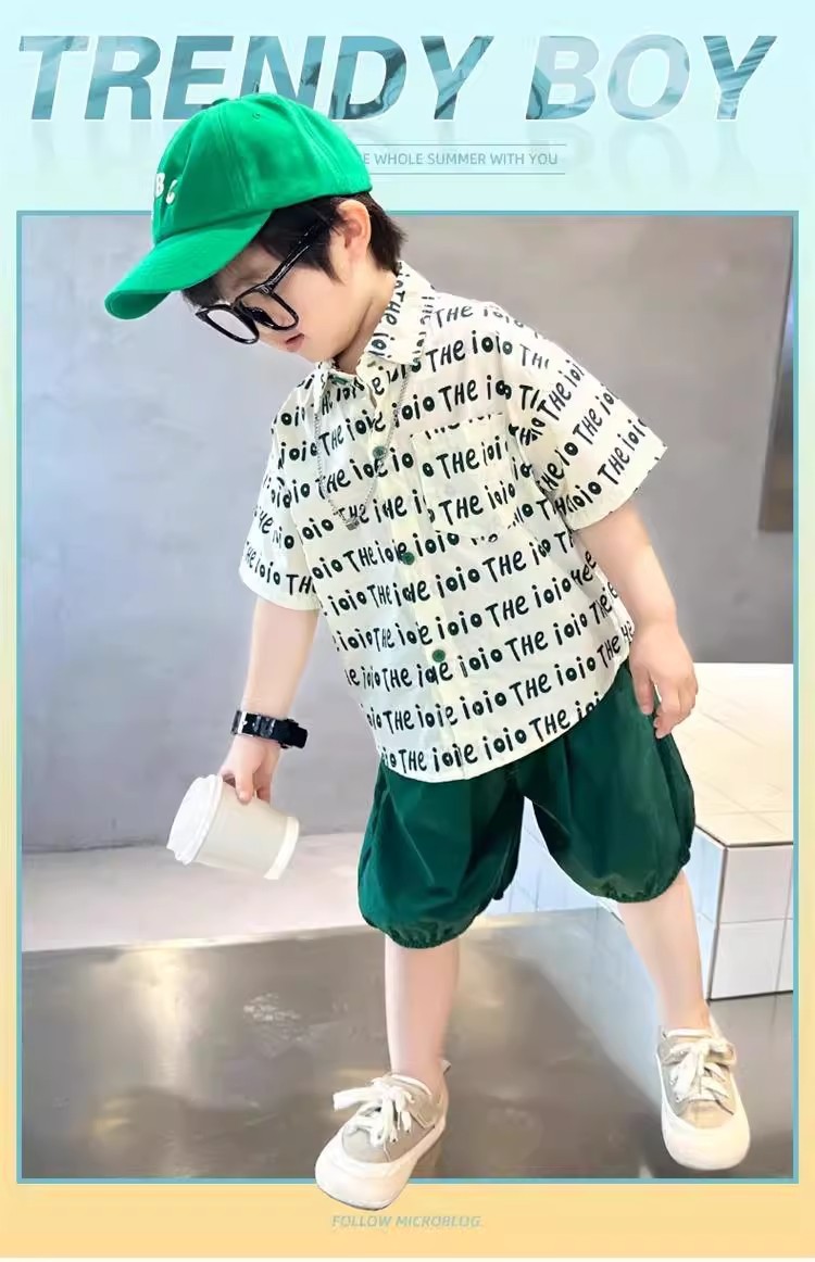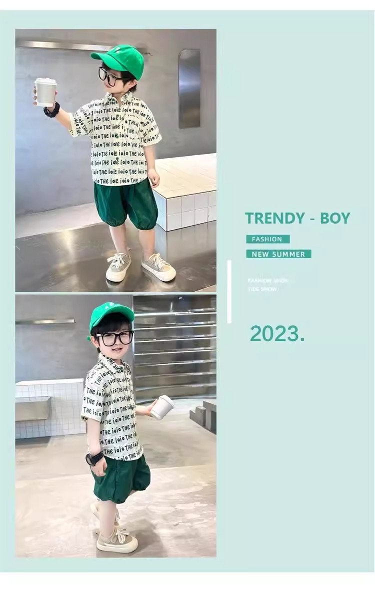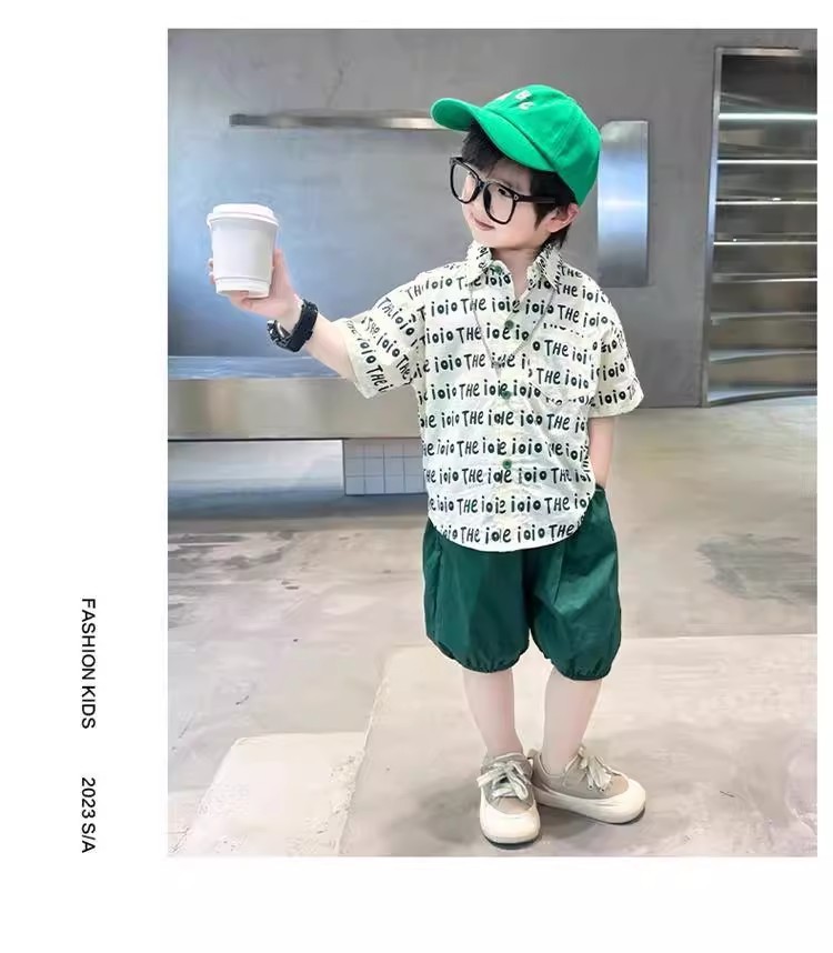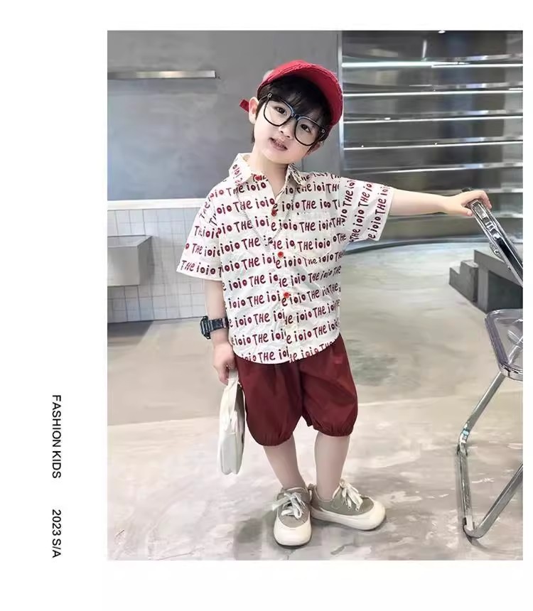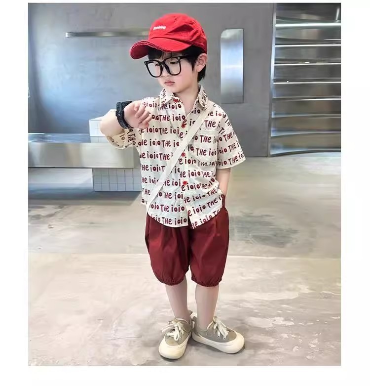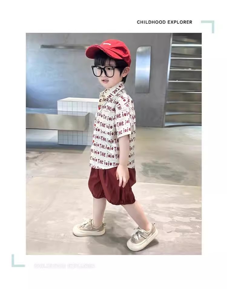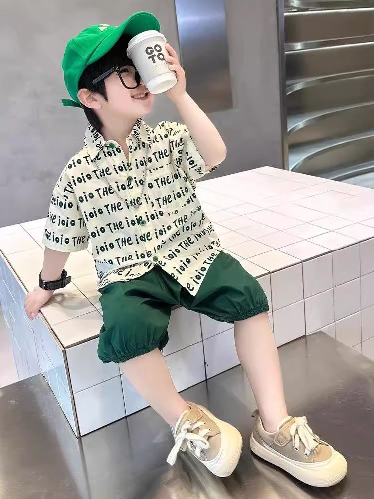 Baby Casual Short-Sleeved Shirt 2026 Summer Thin Kidsren's Letter-Printed Shirt Boys Summer Shirt Short-Sleeved