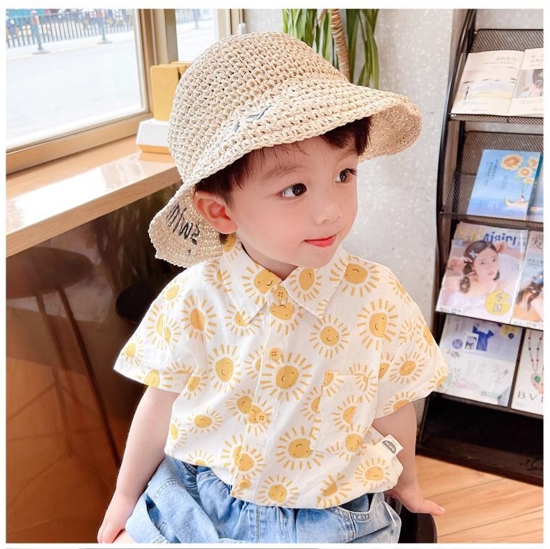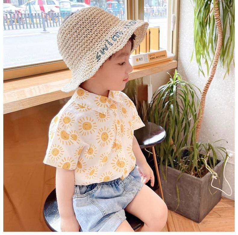 Boys' Summer Short-Sleeved Shirts 2026 New Style Kidsren's Summer Cool Plaid Shirts Boys' Summer Thin Tops
