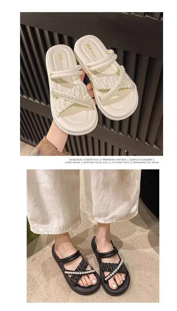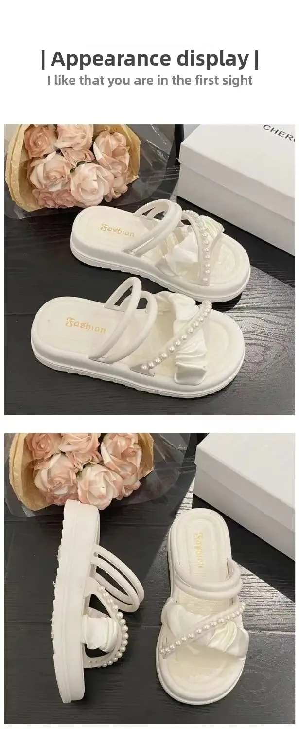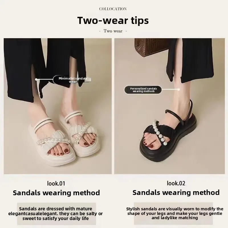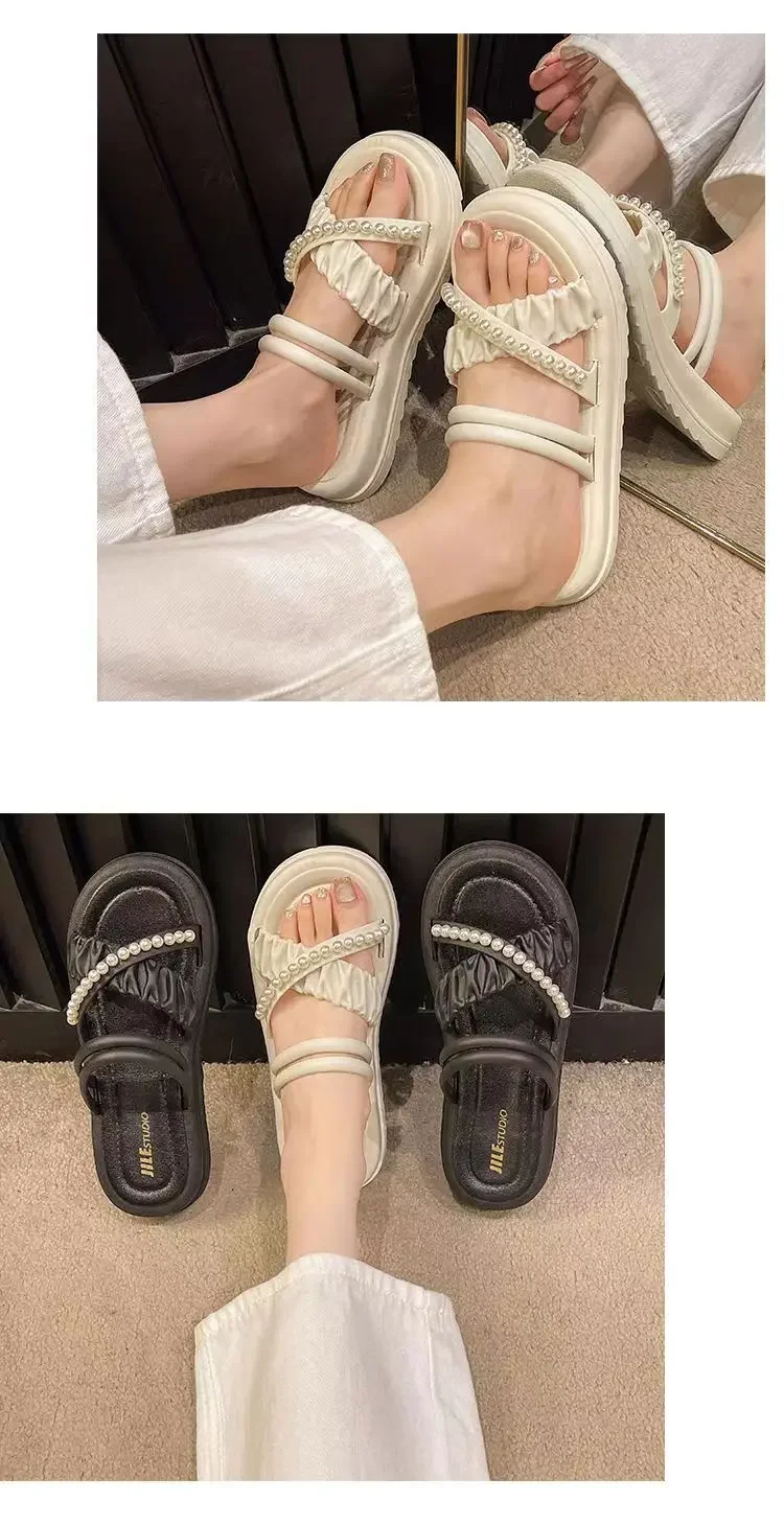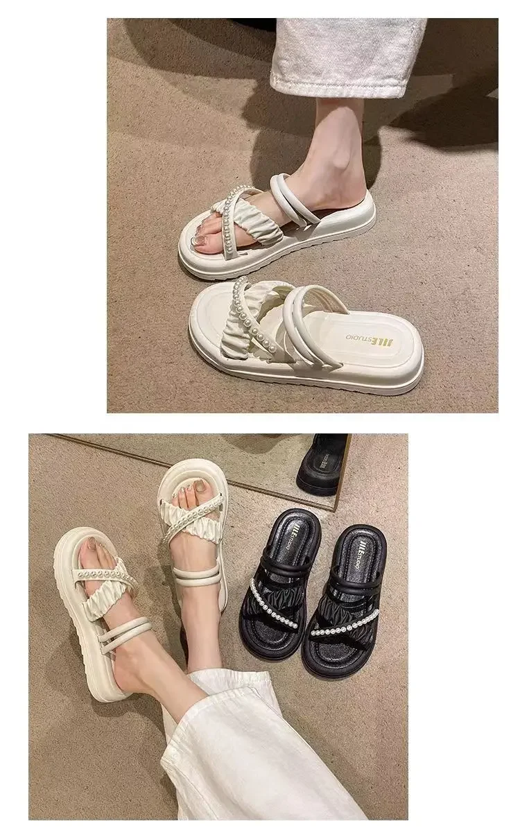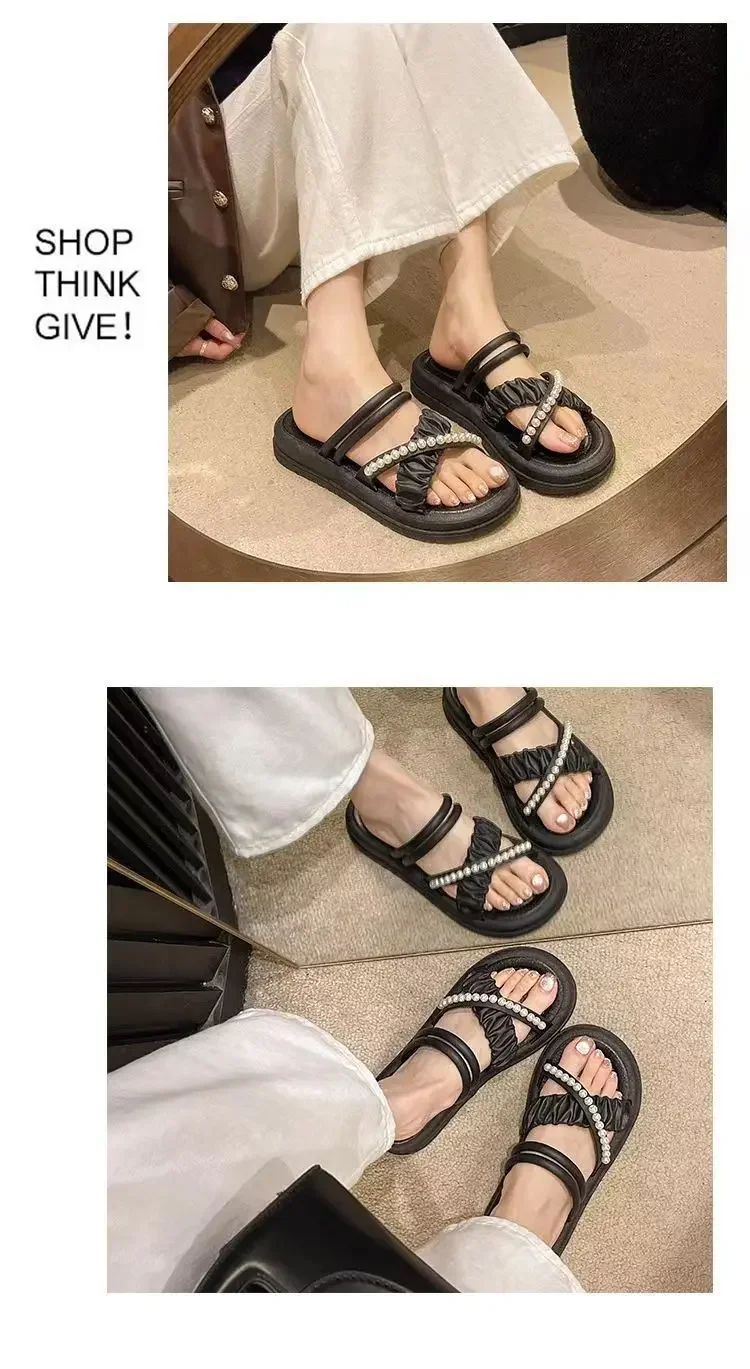 Roman Pearl Sandals Women's Summer 2025 New Fairy Style Thick-Soled Indoor and Outdoor Wear Versatile Fashion Beach Sandals
