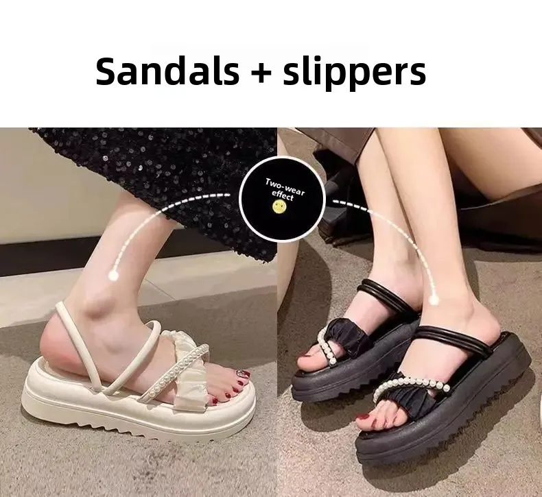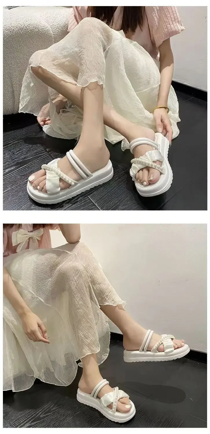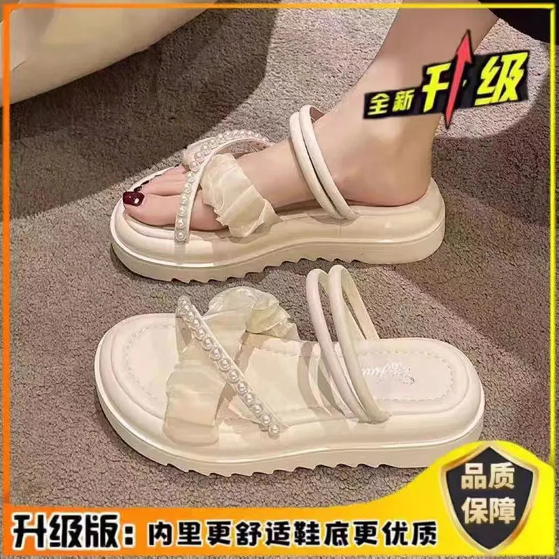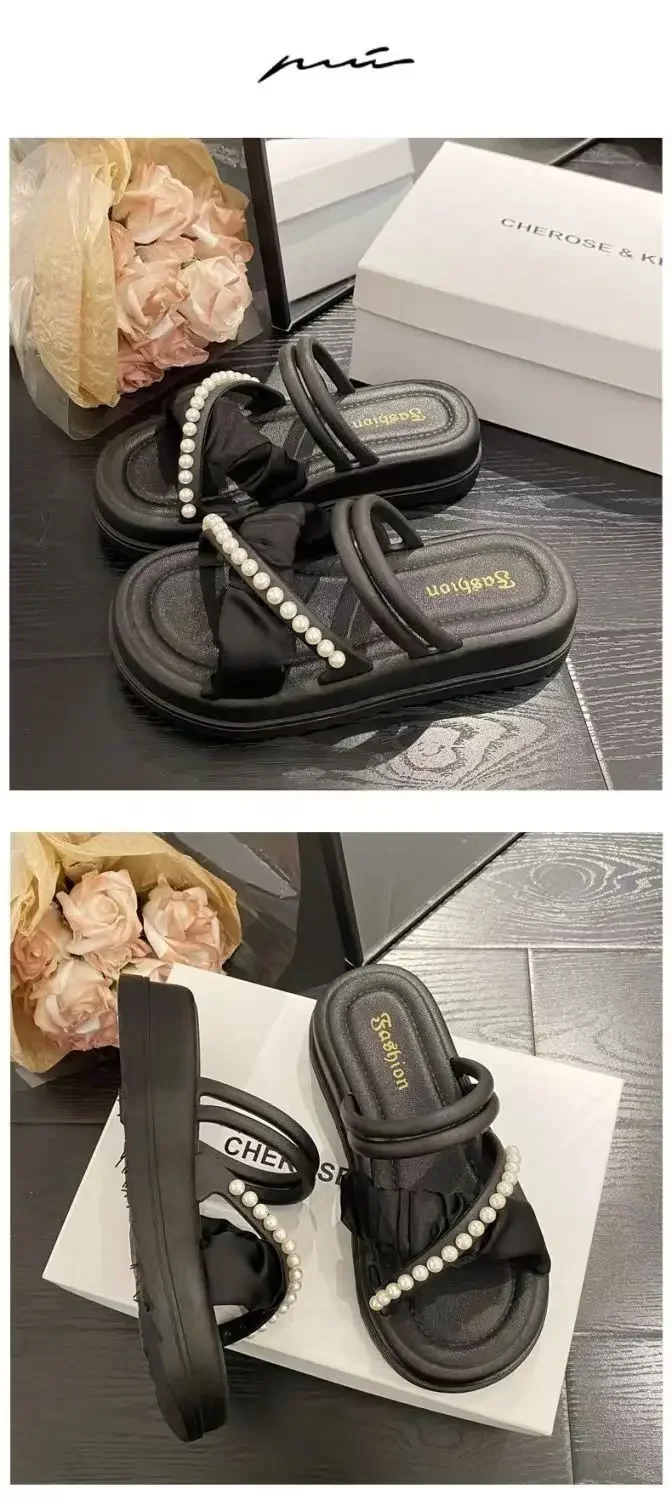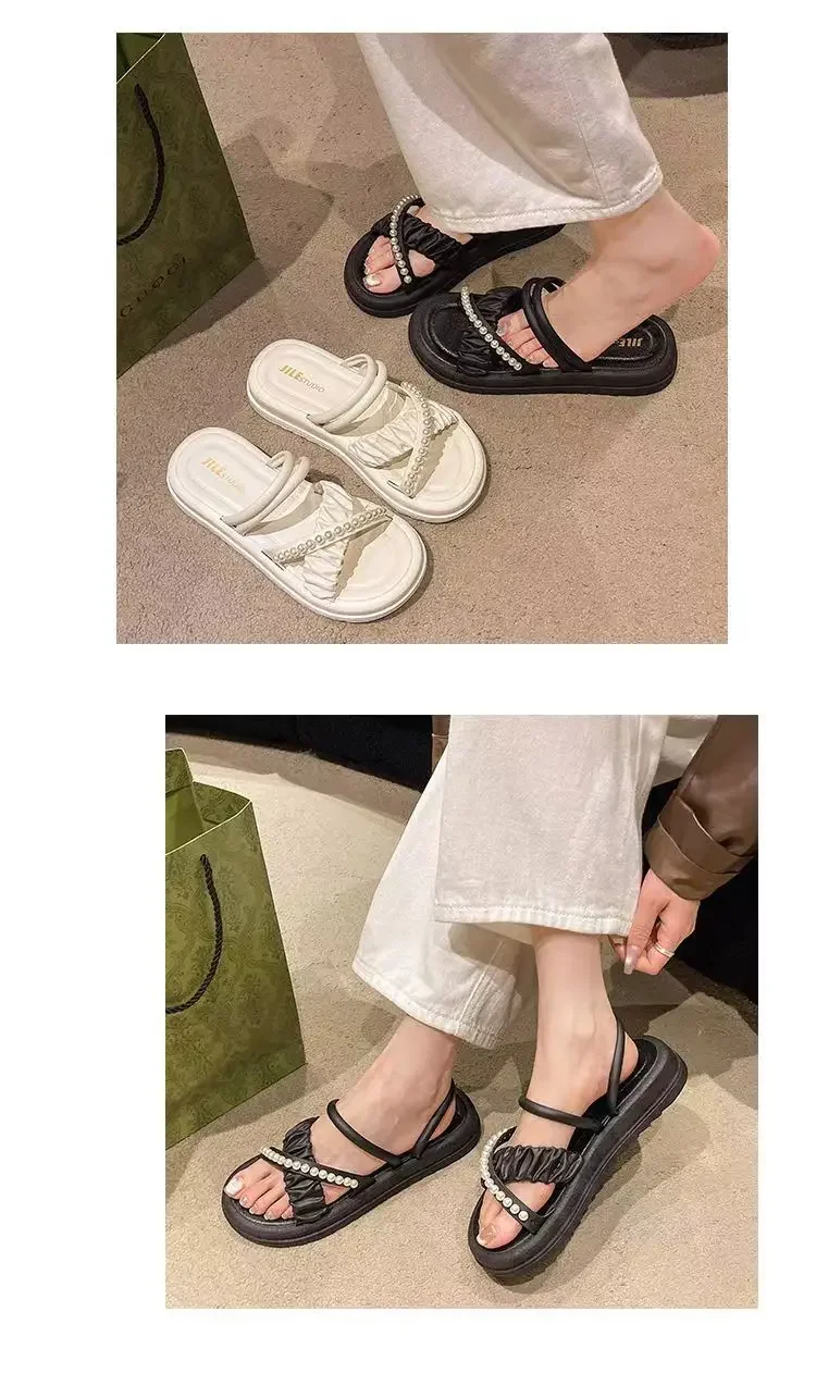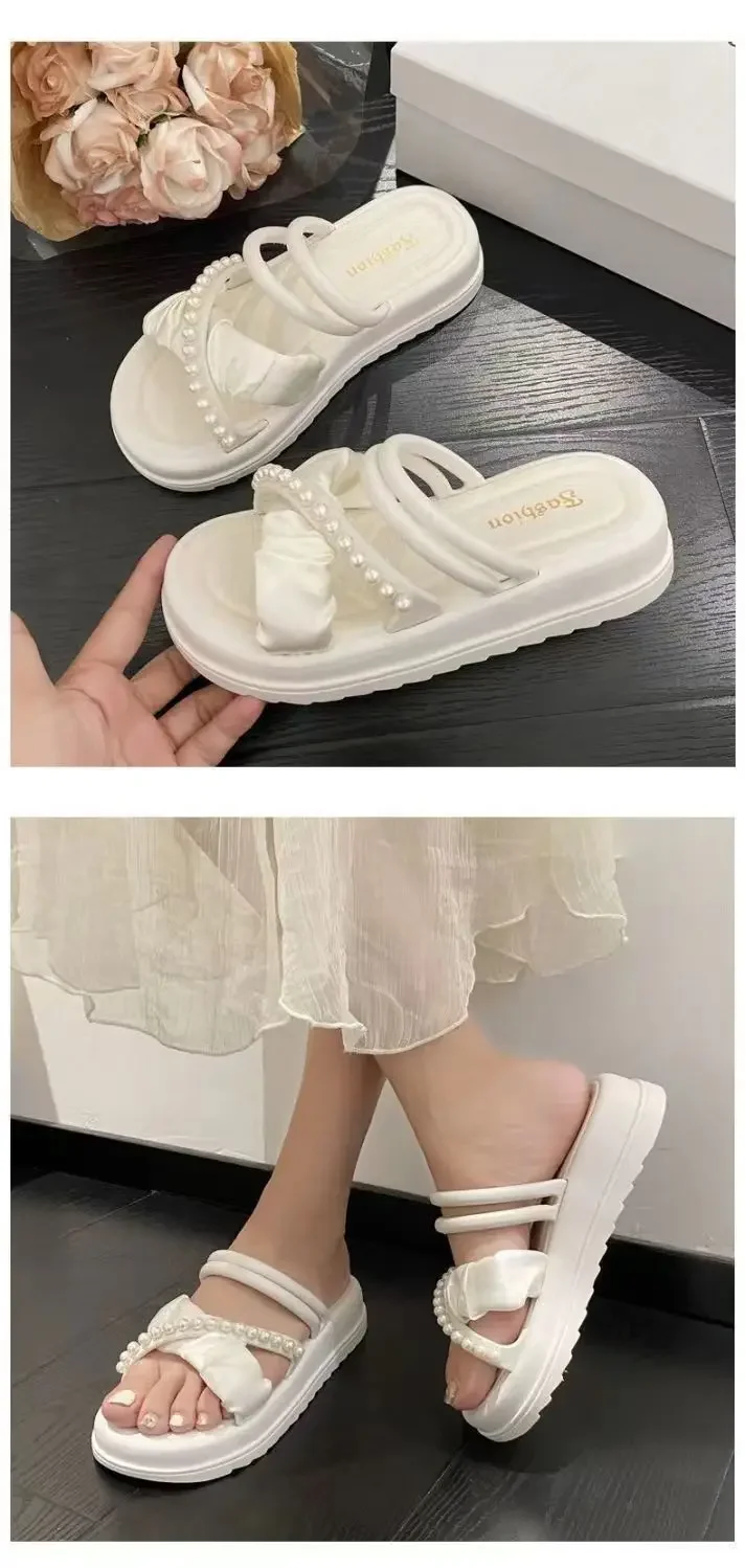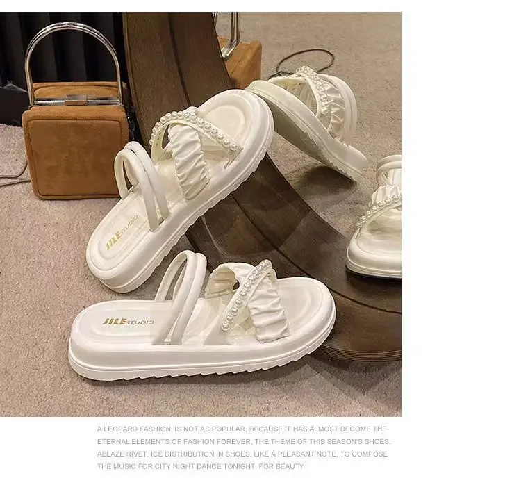 Roman Pearl Sandals Women's Summer 2025 New Fairy Style Thick-Soled Indoor and Outdoor Wear Versatile Fashion Beach Sandals