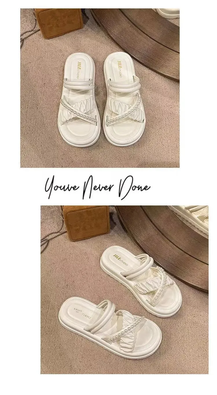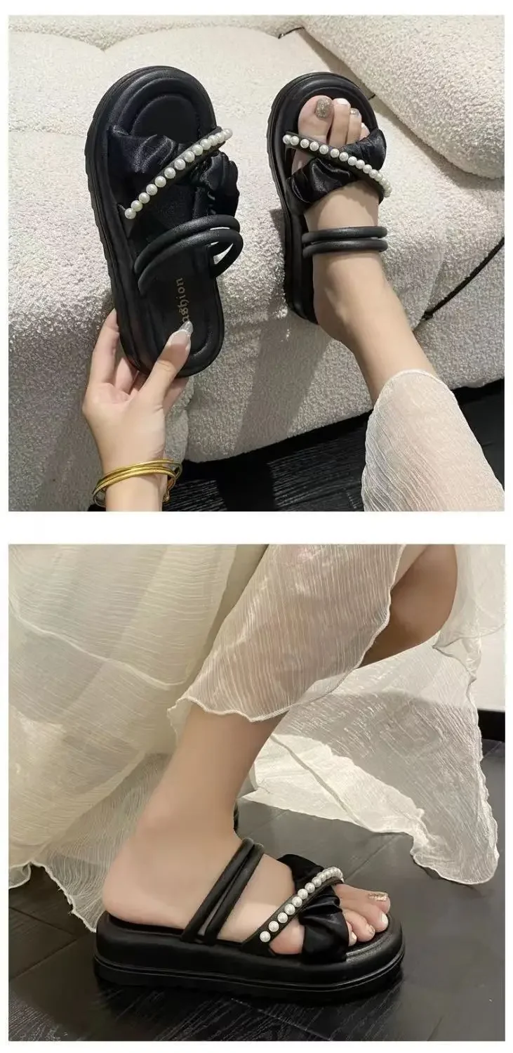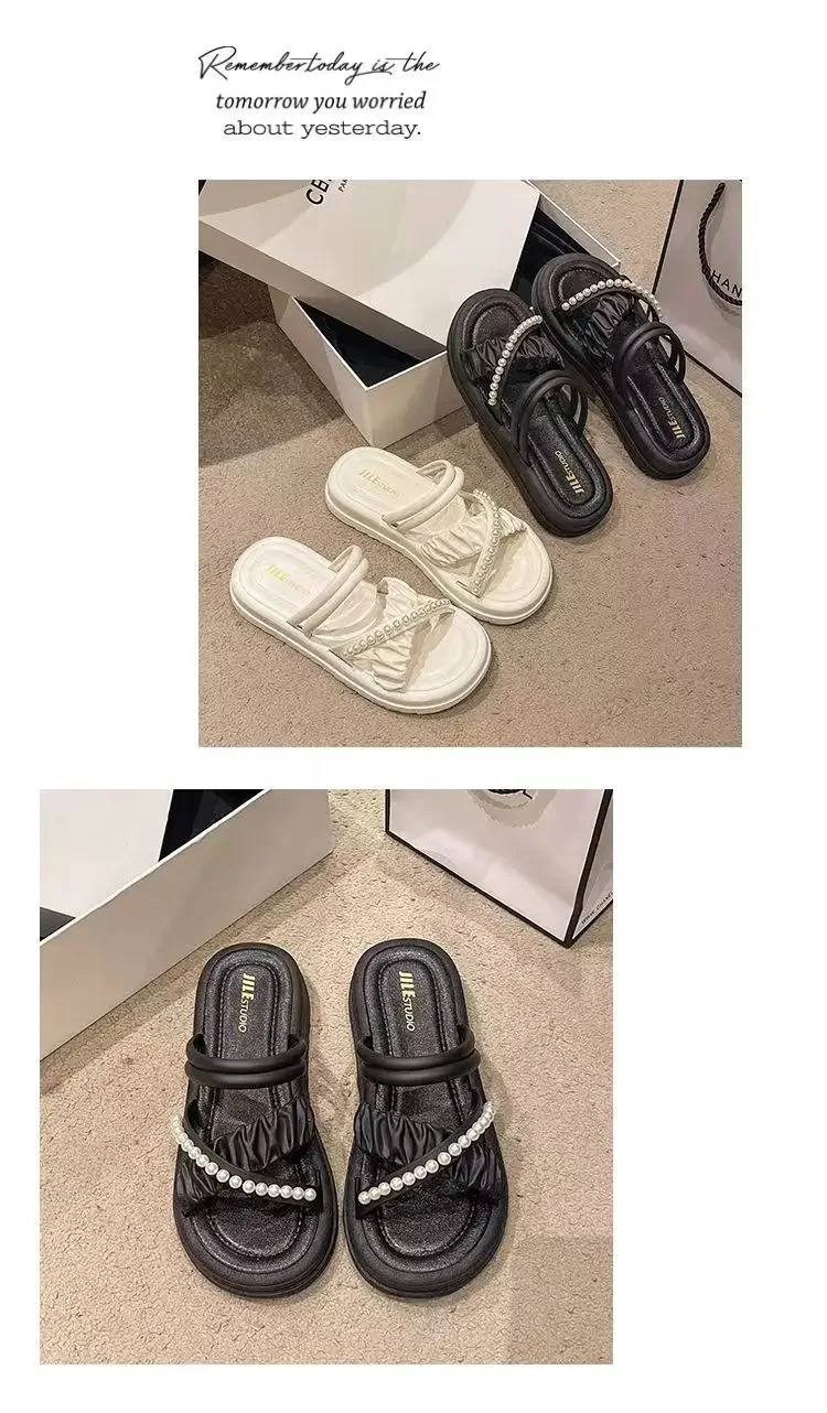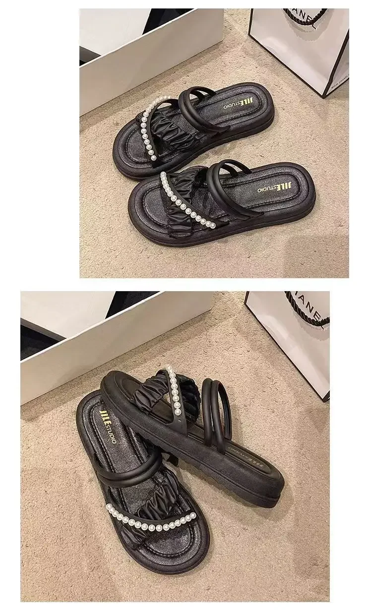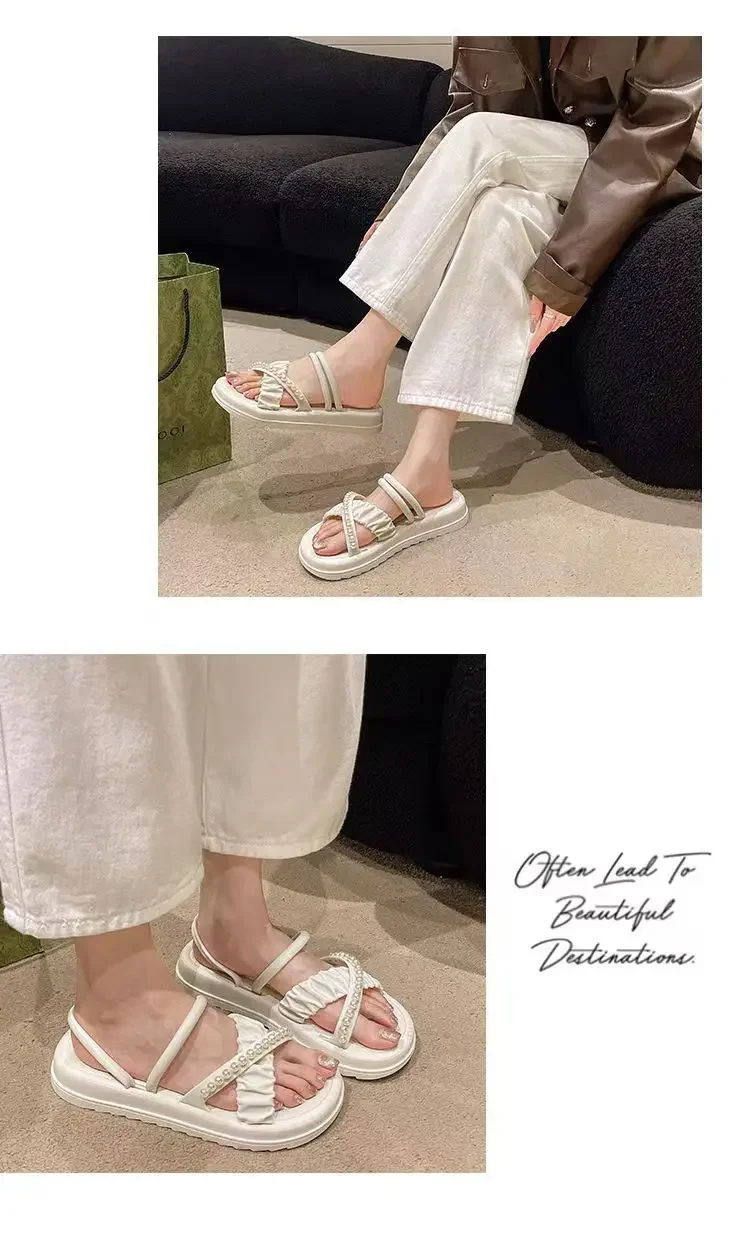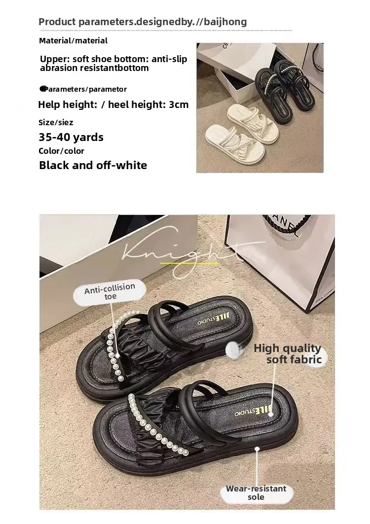 Roman Pearl Sandals Women's Summer 2025 New Fairy Style Thick-Soled Indoor and Outdoor Wear Versatile Fashion Beach Sandals