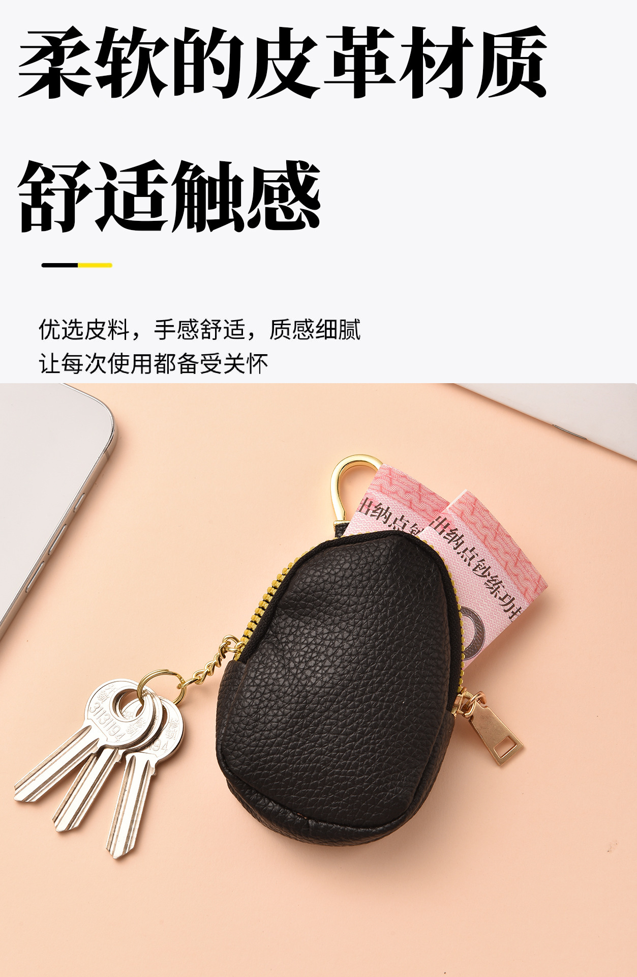 New Simple Key Bag for Home Fashion Car Multi-Functional Large Capacity Mini Zipper Key Bag for Men and Women