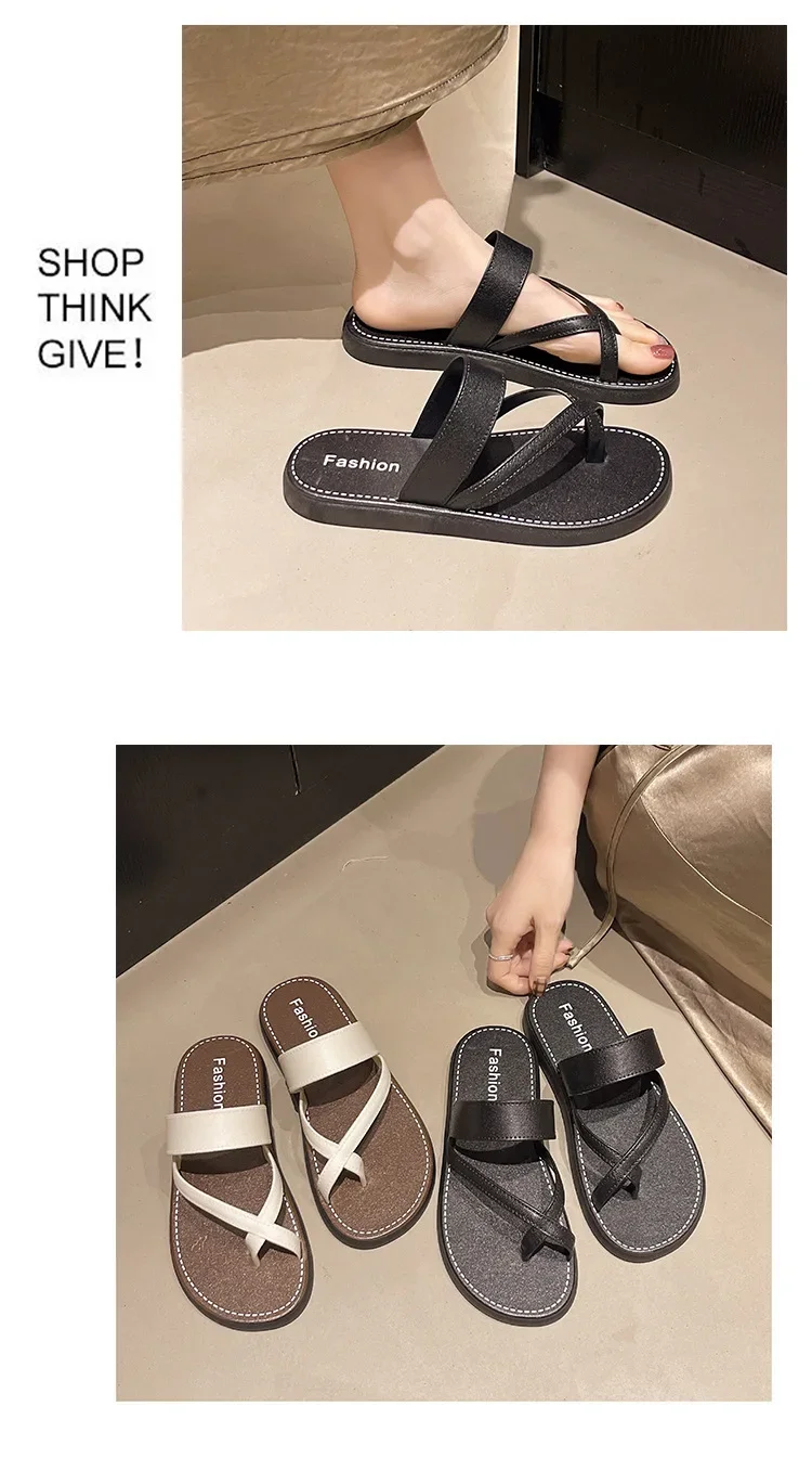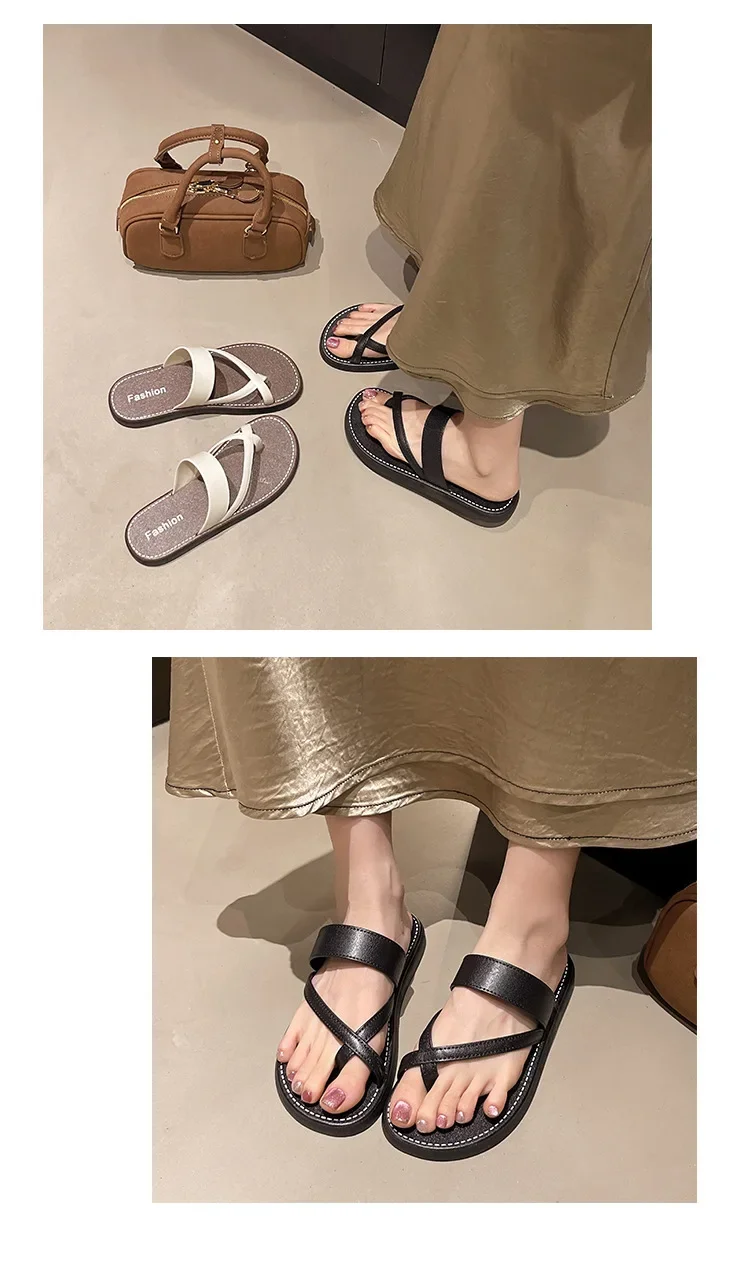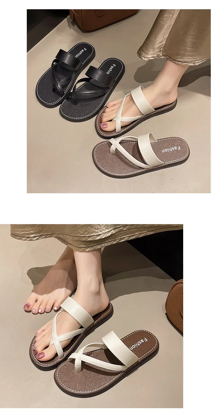 Slippers for Women 2025 Summer Outer Wear Fashionable Korean Style Sandals and Slippers French Fairy Style Flats Beach Shoes