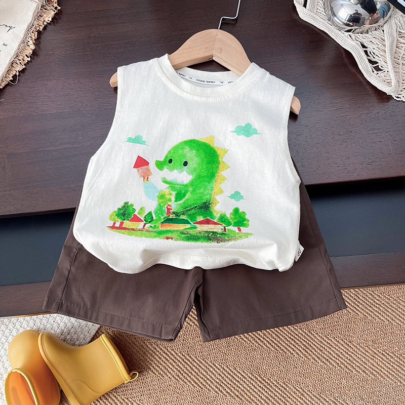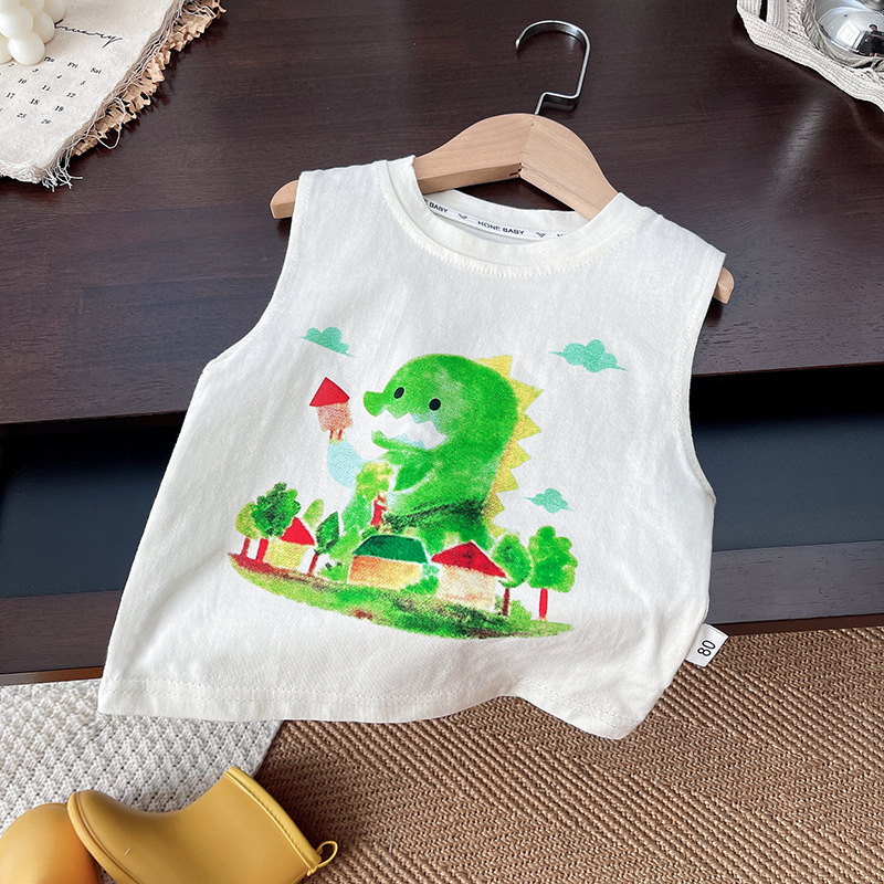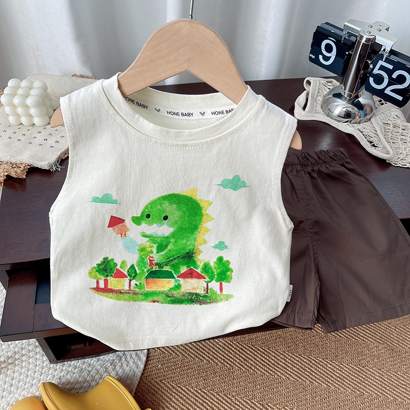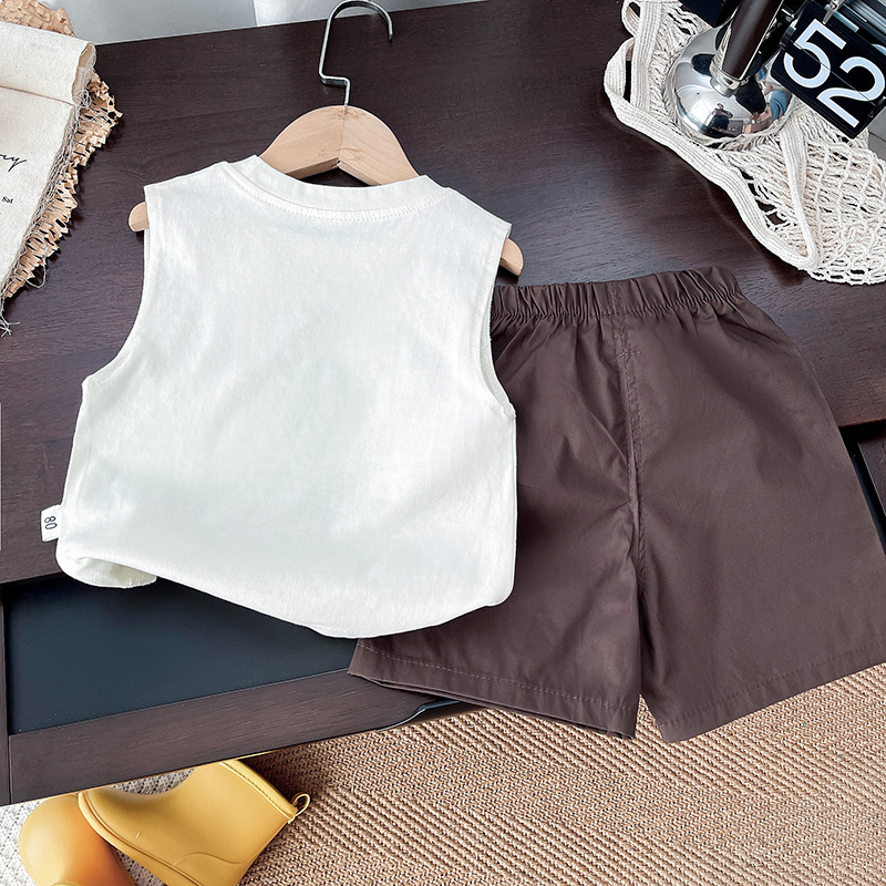 Summer Children's Sleeveless Vest Suit for Boys and Girls, Casual and Fashionable Cartoon Cool and Handsome Summer Vest