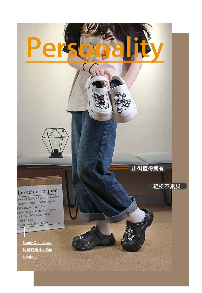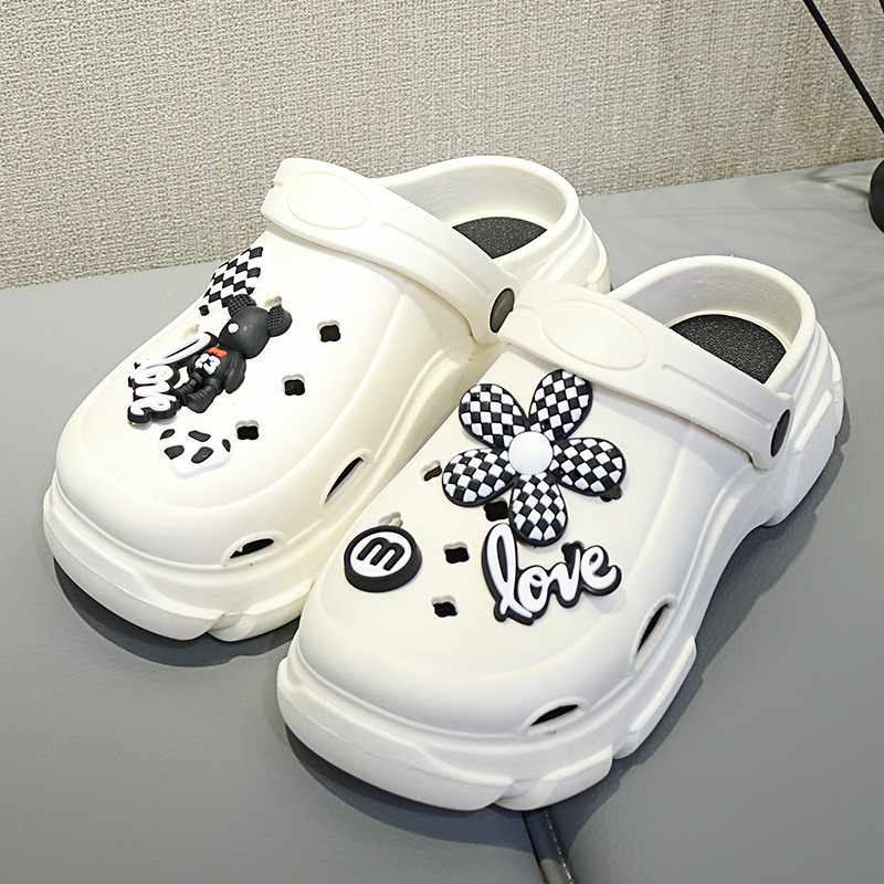 Baotou Clogs for Women 2025 Summer New Korean Fashion Student Cartoon Outdoor Ins Beach Clogs