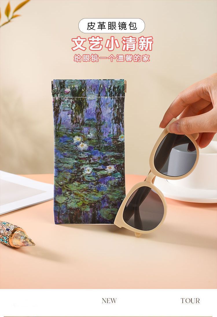 Sunglasses Bag, Portable Sunglasses Bag, Oil Painting Leather Soft Leather Storage Bag, Automatic Closing Protective Box Cover