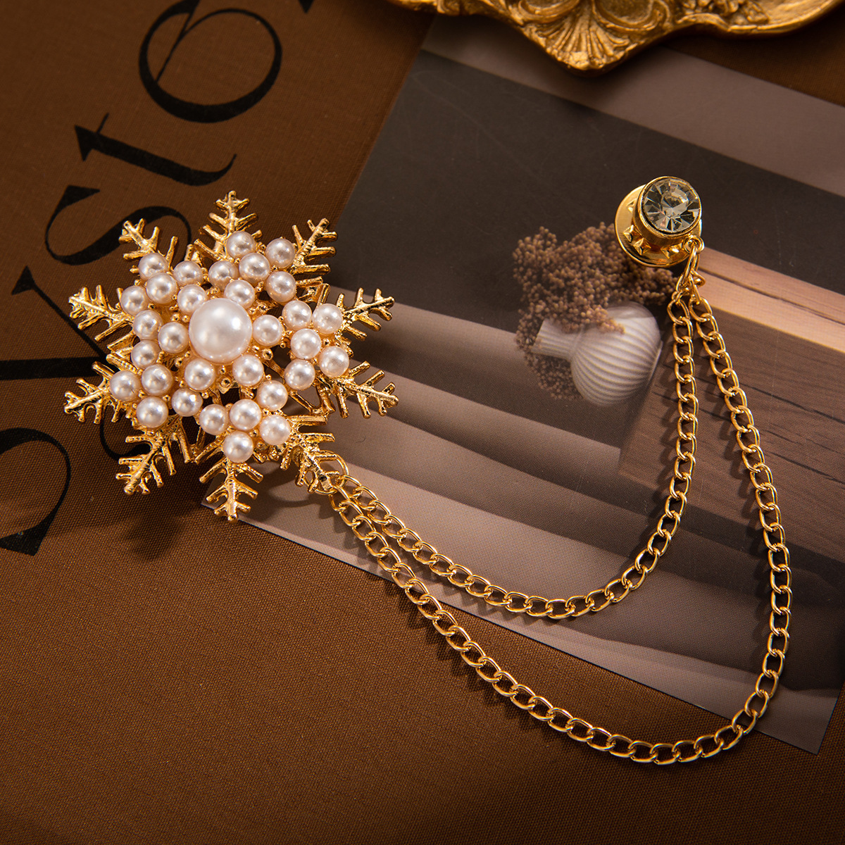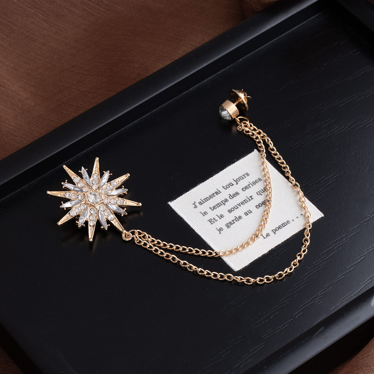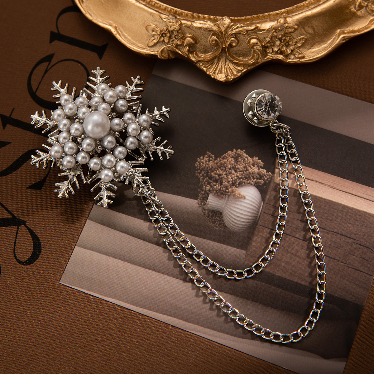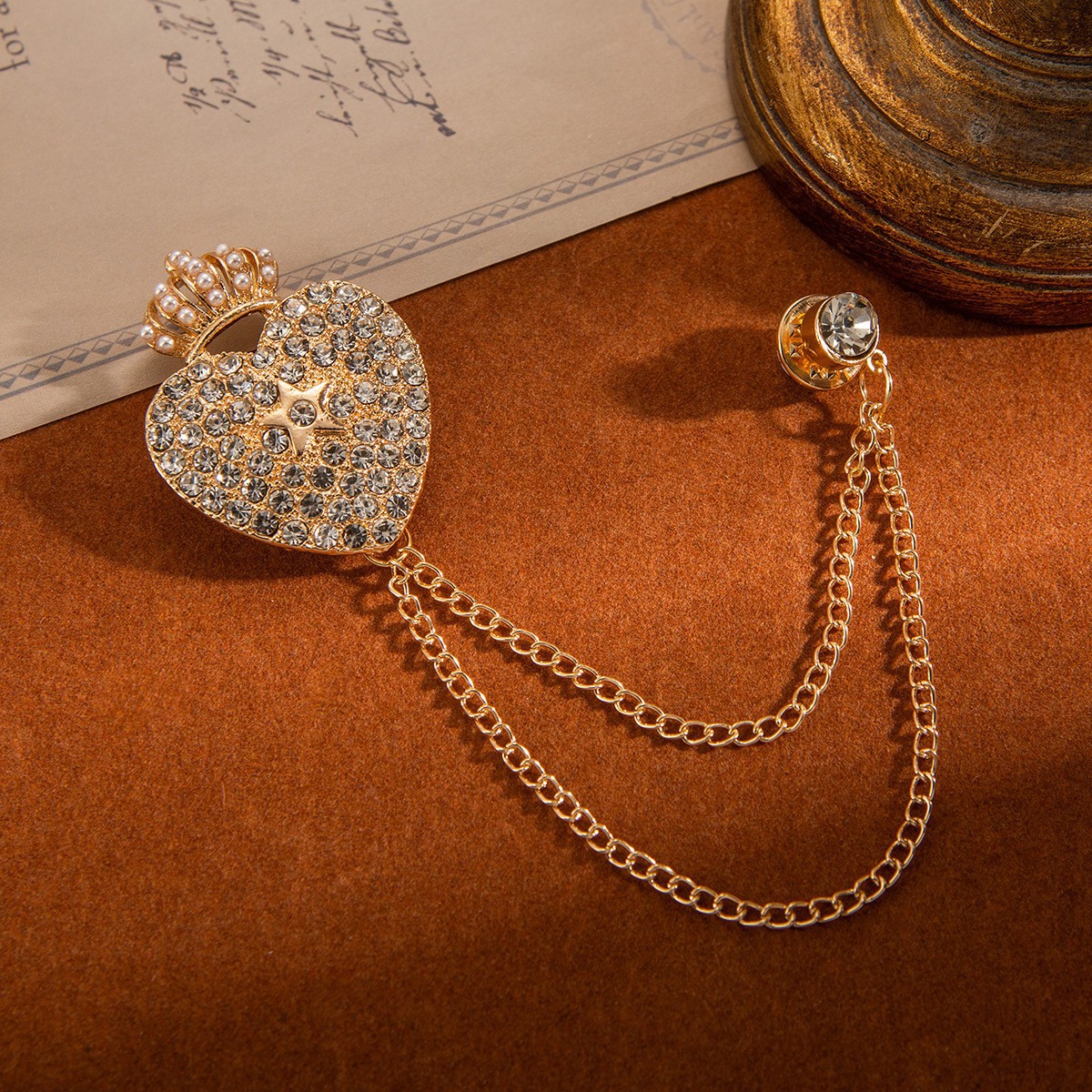 European and American Cross-Border Personalized Chain Diamond Heart Deer Design Brooch Fashion Snowflake Geometric Creative Suit Pin