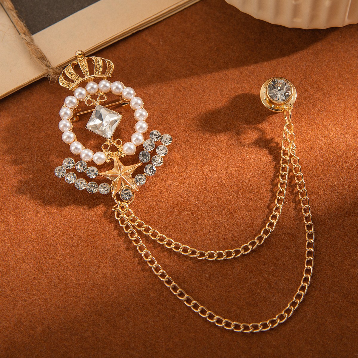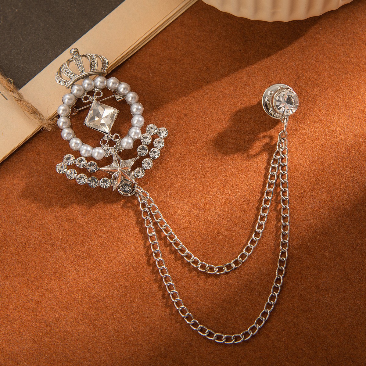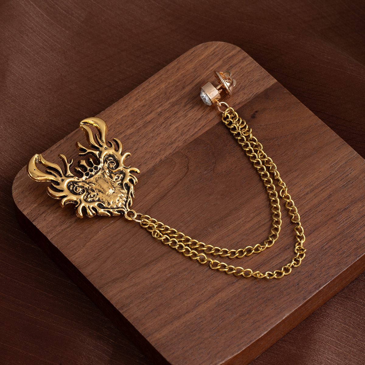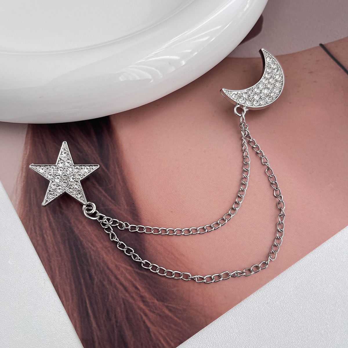 European and American Cross-Border Personalized Chain Diamond Heart Deer Design Brooch Fashion Snowflake Geometric Creative Suit Pin