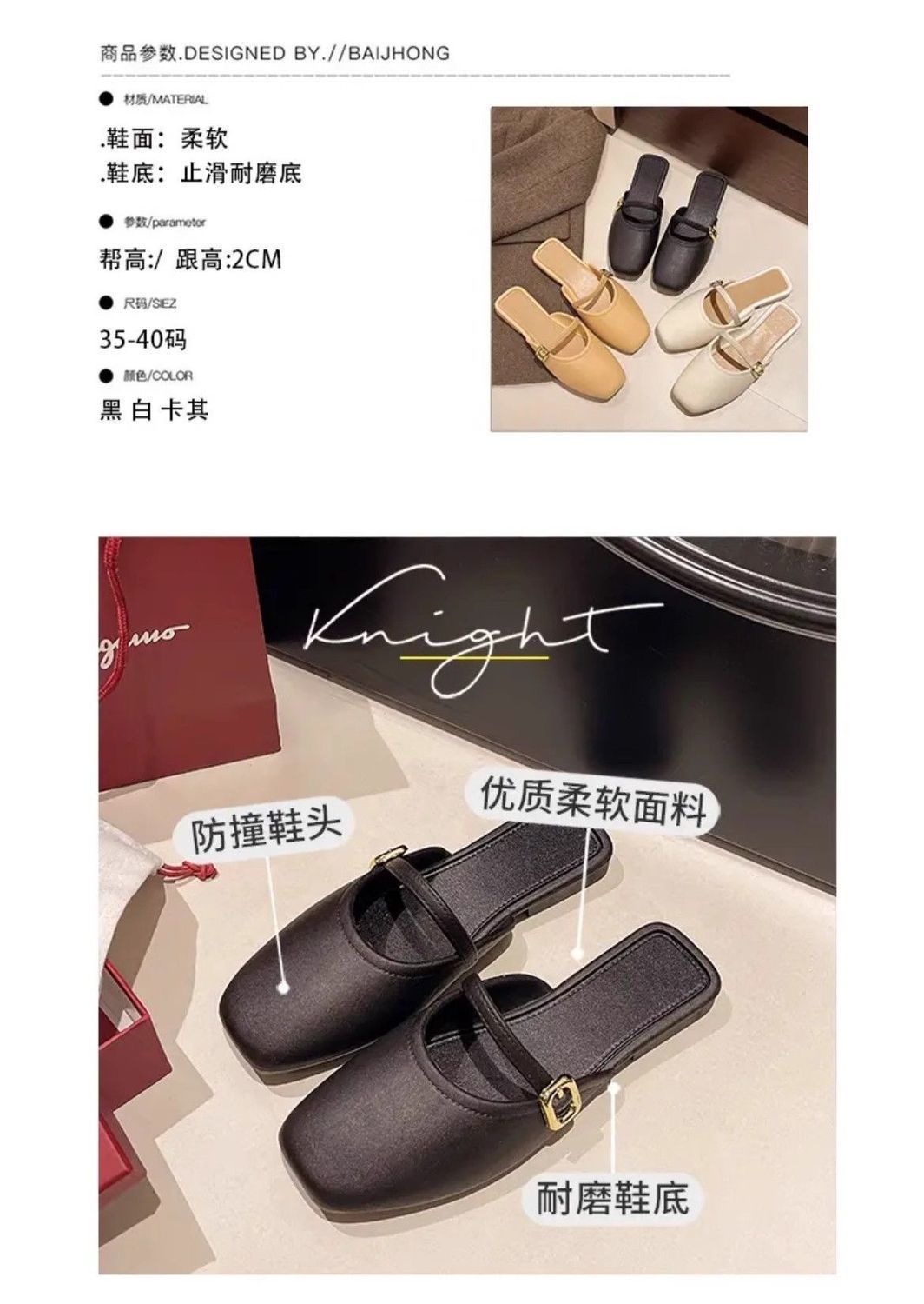 | Color | 076 baotou side buckle [black] | Color | 076 baotou side buckle [khaki] |