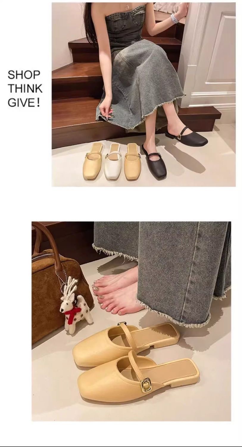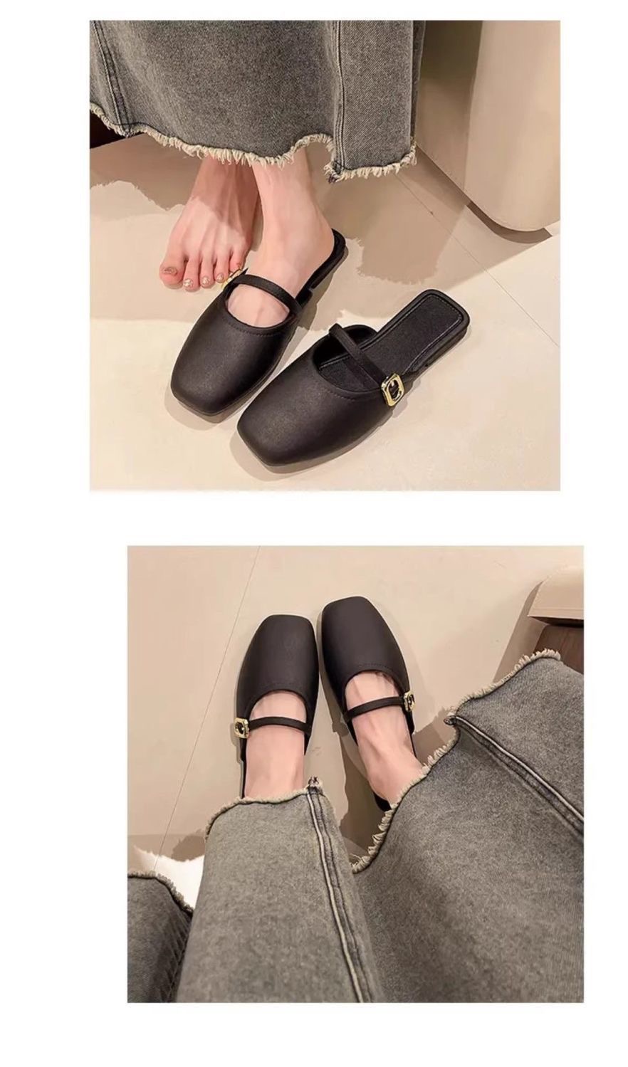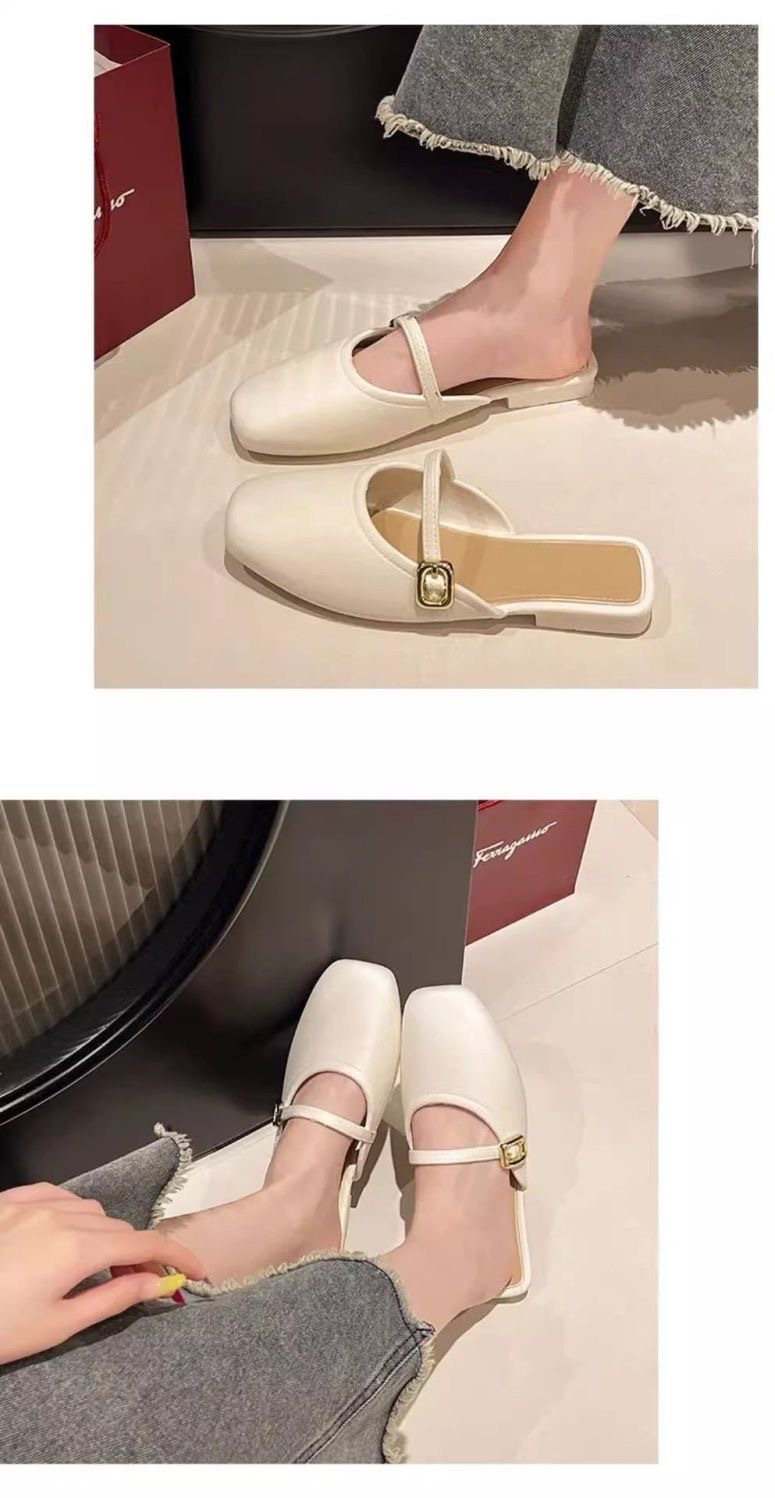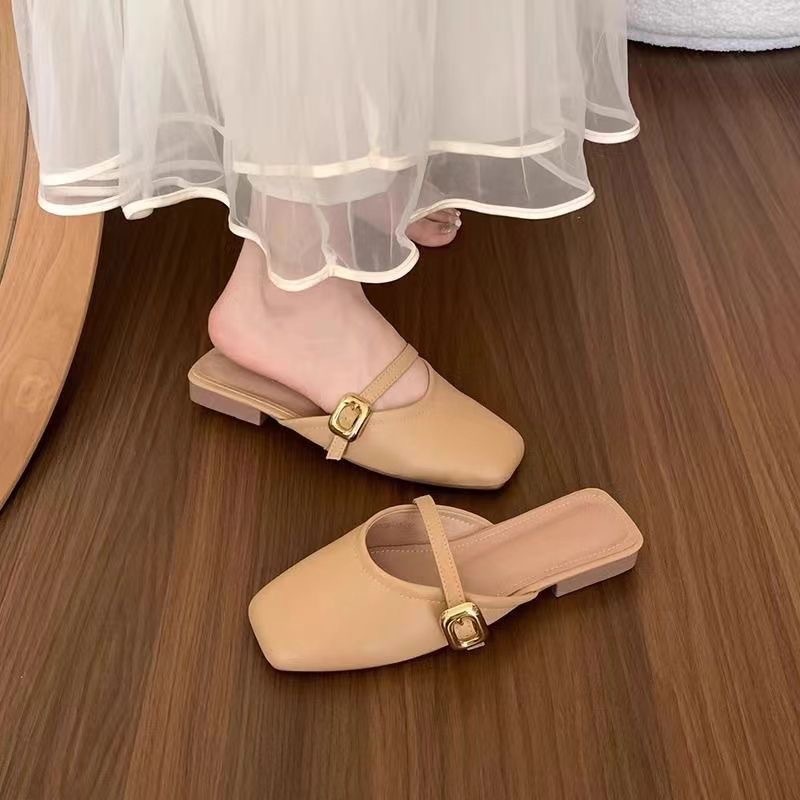 Flat Toe-Cap Mary Jane Sandals 2025 New Sequined Low-Heeled Elegant Sandals with Skirt and Half Slippers for Women