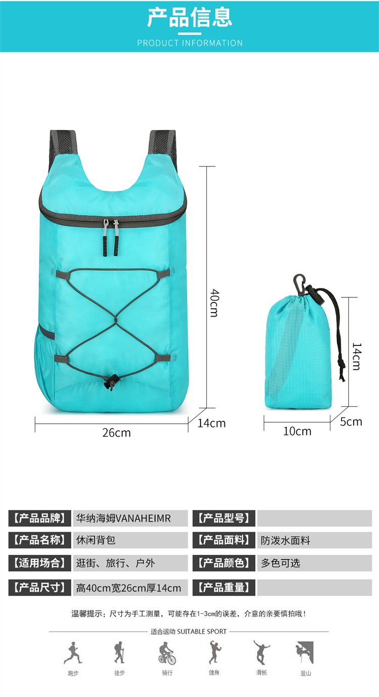 Cross-Border Fashion Leisure Travel Backpack Large Capacity Sports Mountaineering Outdoor Skin Bag Portable Foldable Backpack