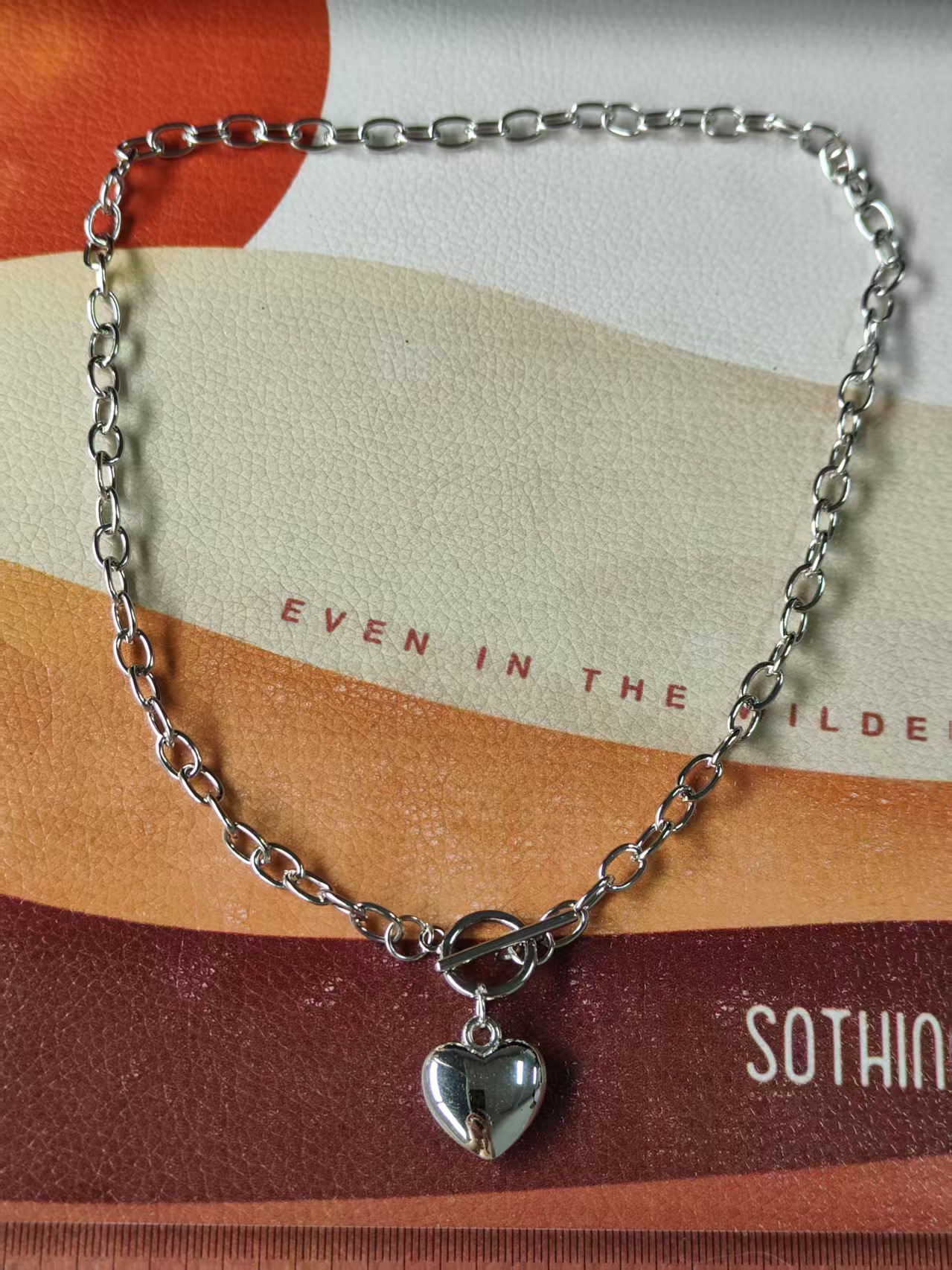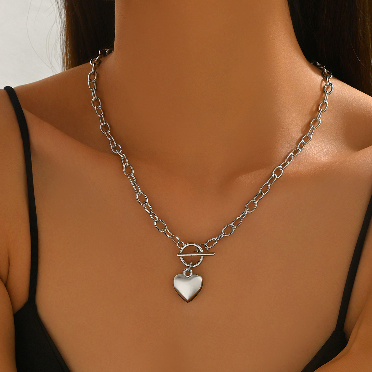 European and American Cross-Border Foreign Trade Personalized Trendy Ot Buckle Heart Pendant Necklace Niche Design Minimalist Clavicle Chain