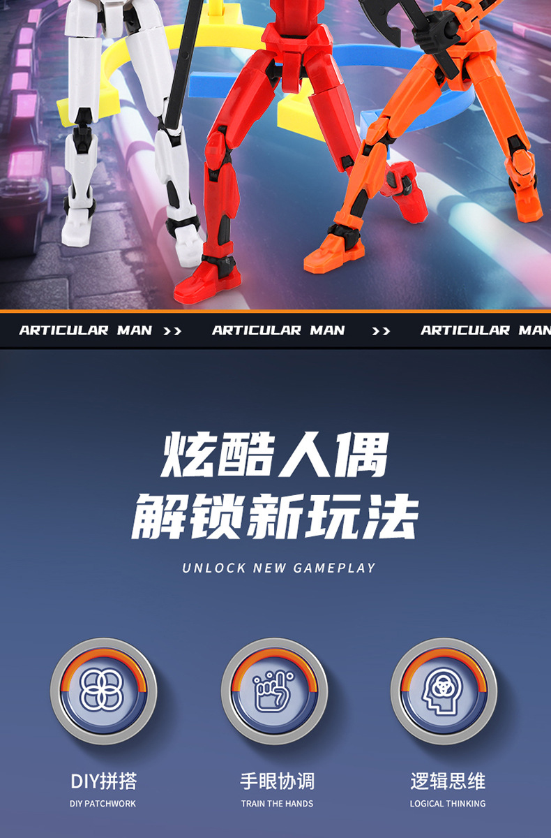 Children's DIY Assembling Transformable Jointed Doll Magnetic Anti-Gravity 3D Printed Lucky Jointed Doll Toy Transformation