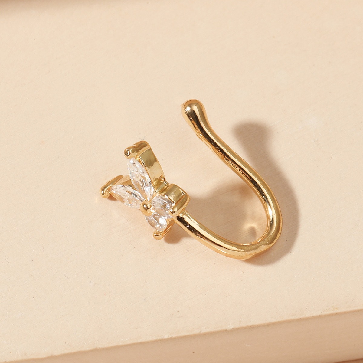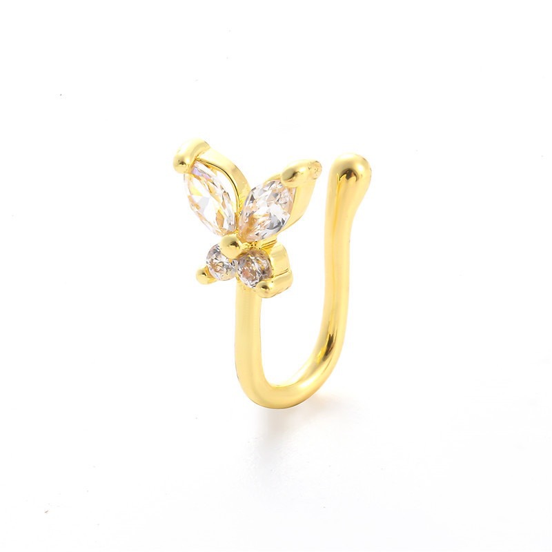 Cross-Border European and American Butterfly Non-Pierced Nose Clip Nose Ring Retro Fashion Copper Inlaid Zircon U-Shaped Nose Nail Piercing Jewelry for Women
