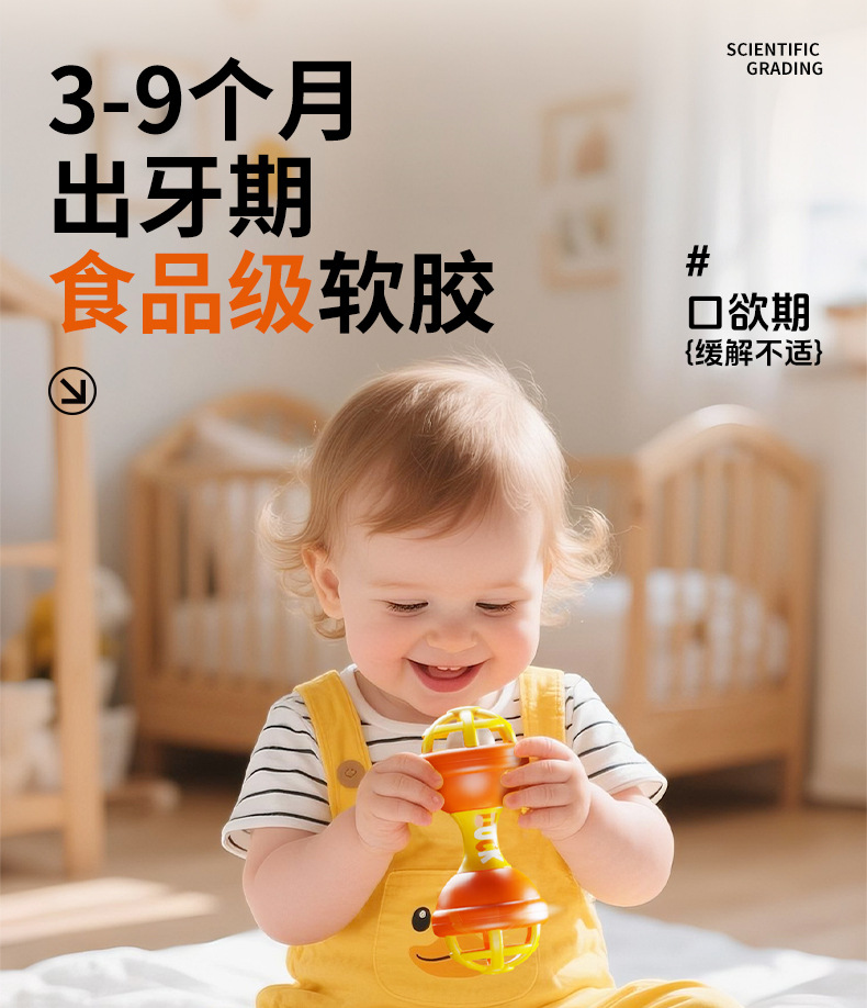 Little Yellow Duck Rattle Baby Can Chew Teether Grasp Training Hand Rattle to Soothe Baby Newborn Gift Cross-Border