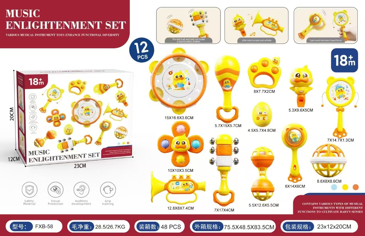 | Color | Little cute duck rattle [12-piece set] english color box | Color | Little cute duck [hand drum] bag |
