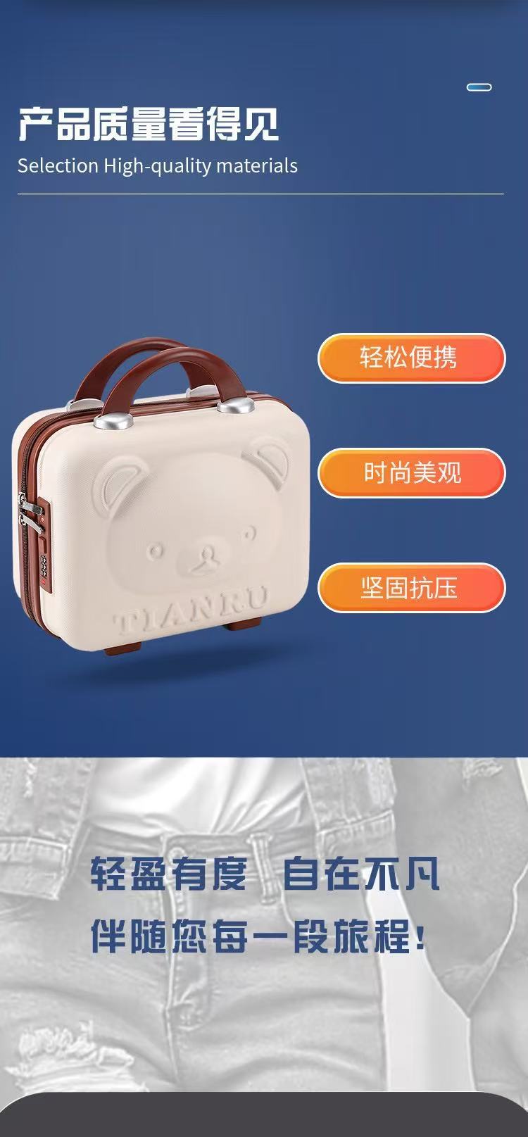 Factory Direct Sales Cute Cartoon Bear Cosmetic Bag Portable 14inch Suitcase Souvenir Suitcase Cosmetic Case