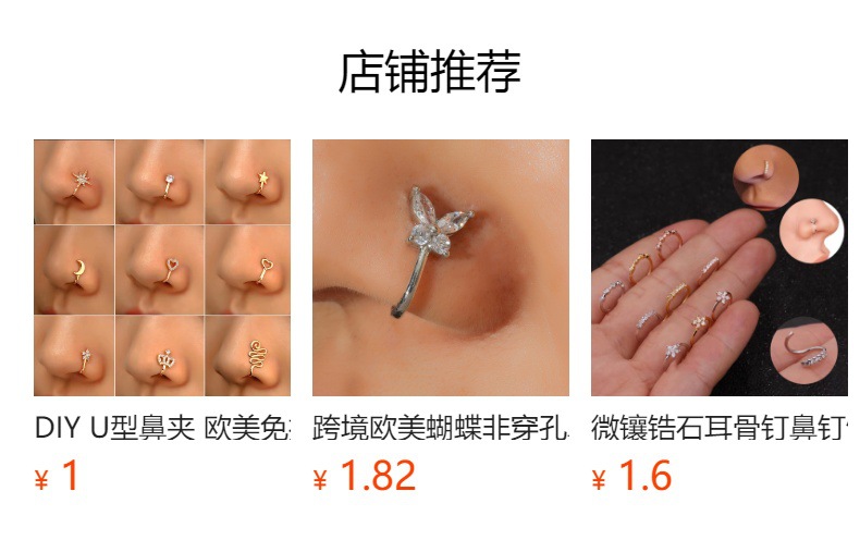 Cross-Border Simple and Personalized U-Shaped Fake Nose Ring Amazon Diamond Butterfly Nose Nail European and American Hole-Free Nose Clip Piercing Jewelry