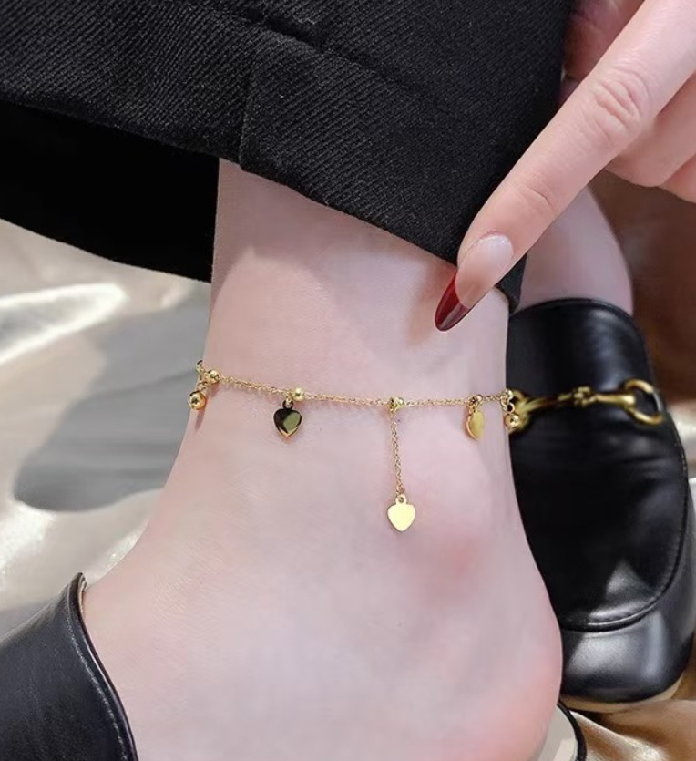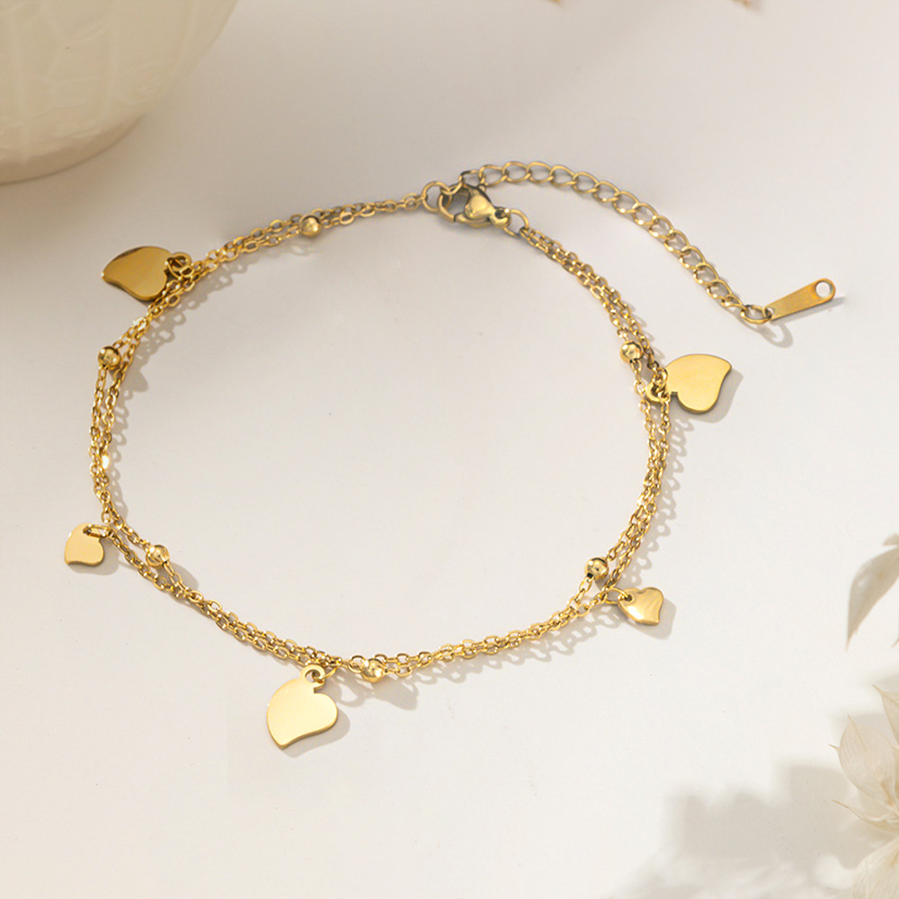 | Color | 【xka0045】gypsophila anklet gold | Color | 【xka0026】double-layered peach heart anklet steel color |