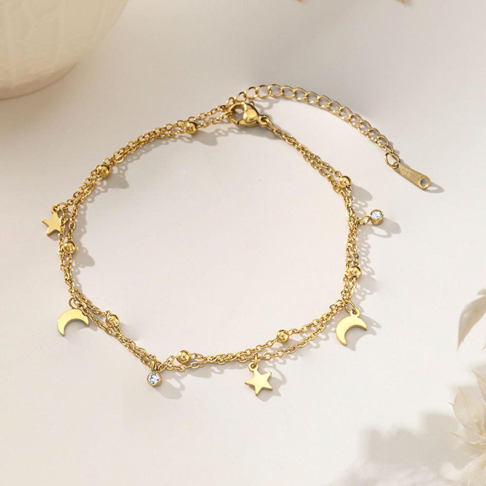 | Color | 【xka0095】double-layer single diamond star and moon anklet gold | Color | 【xka010】six discs anklet gold |