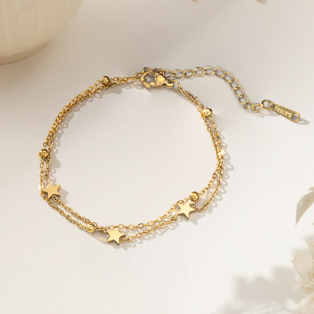 | Color | 【xka0092】double-layer five-pointed star anklet gold | Color | 【xka5067】gypsophila beads anklet gold |