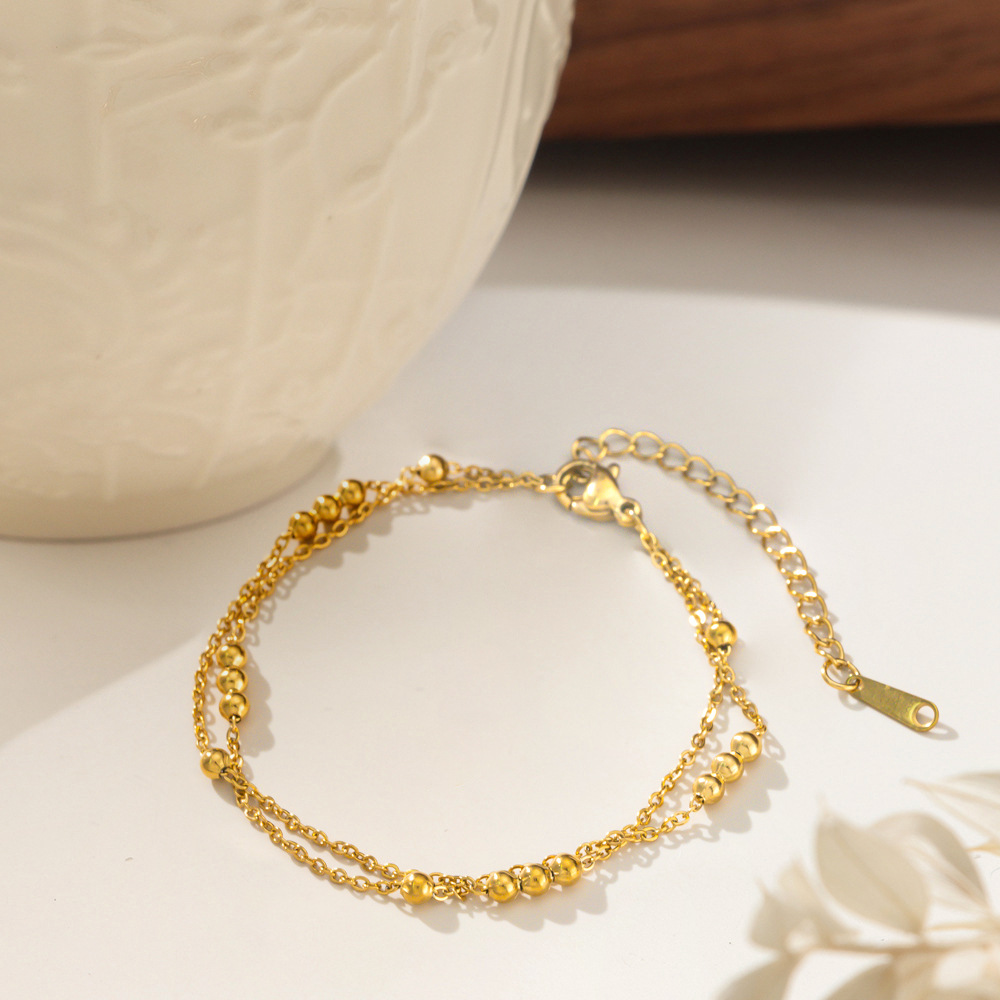 | Color | 【xka0019】square flower anklet gold | Color | 【xka0023】double layer ball anklet gold |