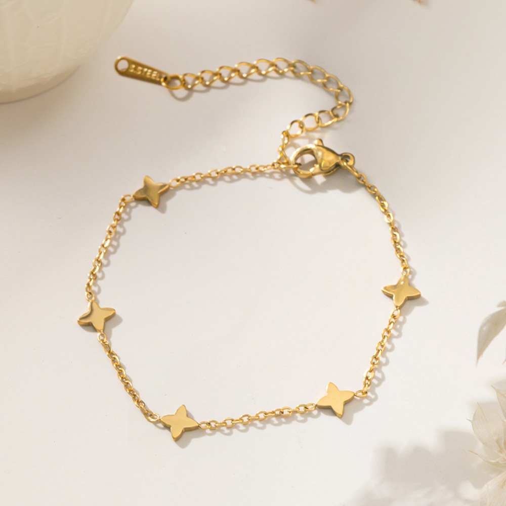 | Color | 【xka5066】double-layer five-pointed star anklet gold | Color | 【xka5064】colored diamond four-leaf flower anklet gold |