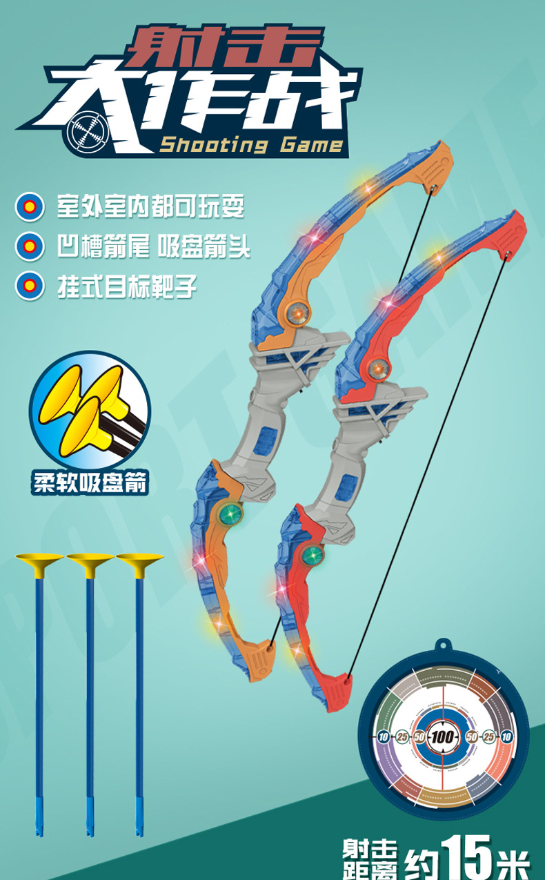 | Color | 848-1 luminous model - red - standard configuration [3 arrows + hanging target + back quiver] + 2 aa batteries | Color | 848-1 luminous model - yellow - standard configuration [3 arrows + hanging target + back quiver] + 2 aa batteries |