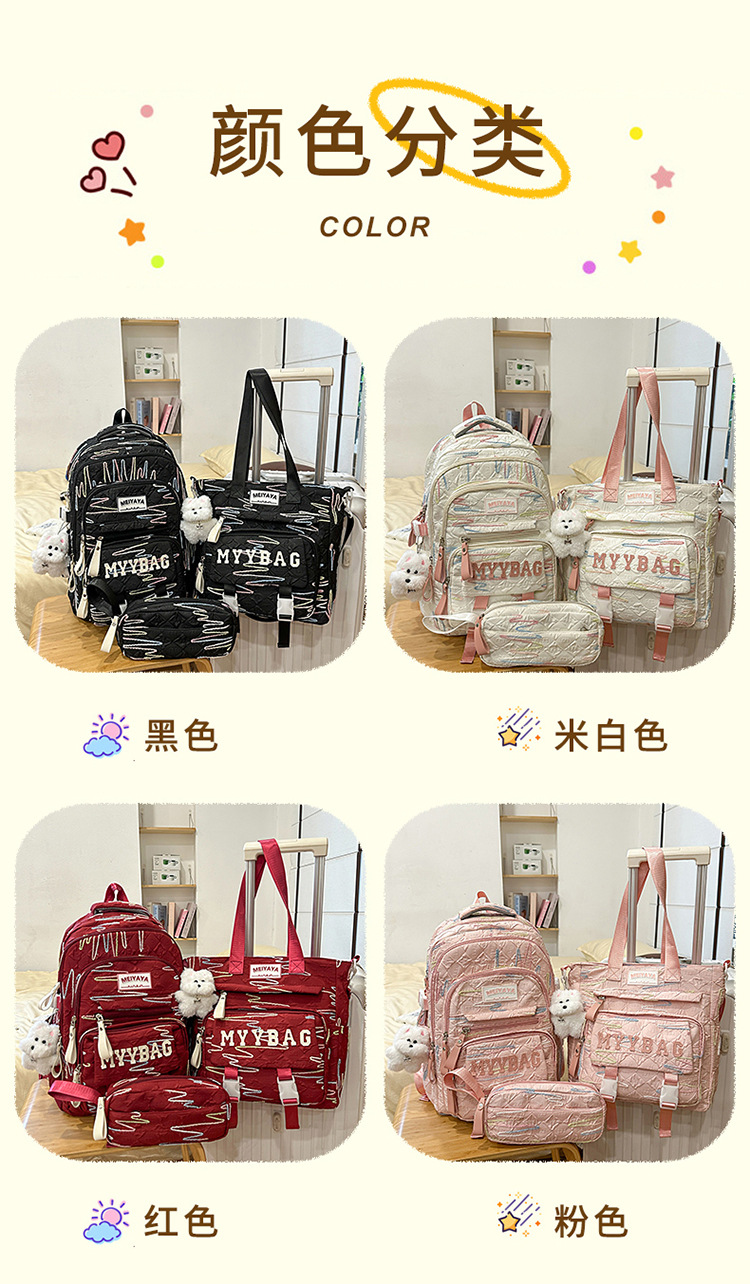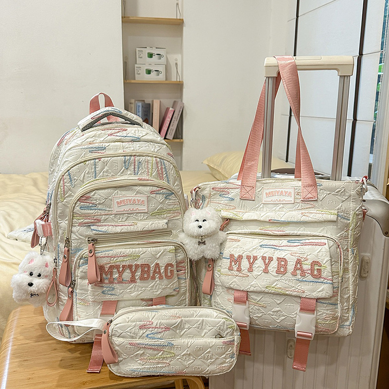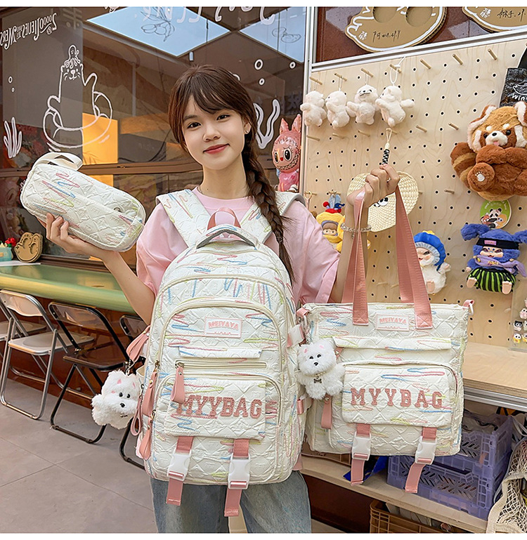 Student Schoolbags, Female Elementary School Students, Junior High School Students, High School Three-Piece Set, College Student Backpacks, Large-Capacity Girls' Backpacks