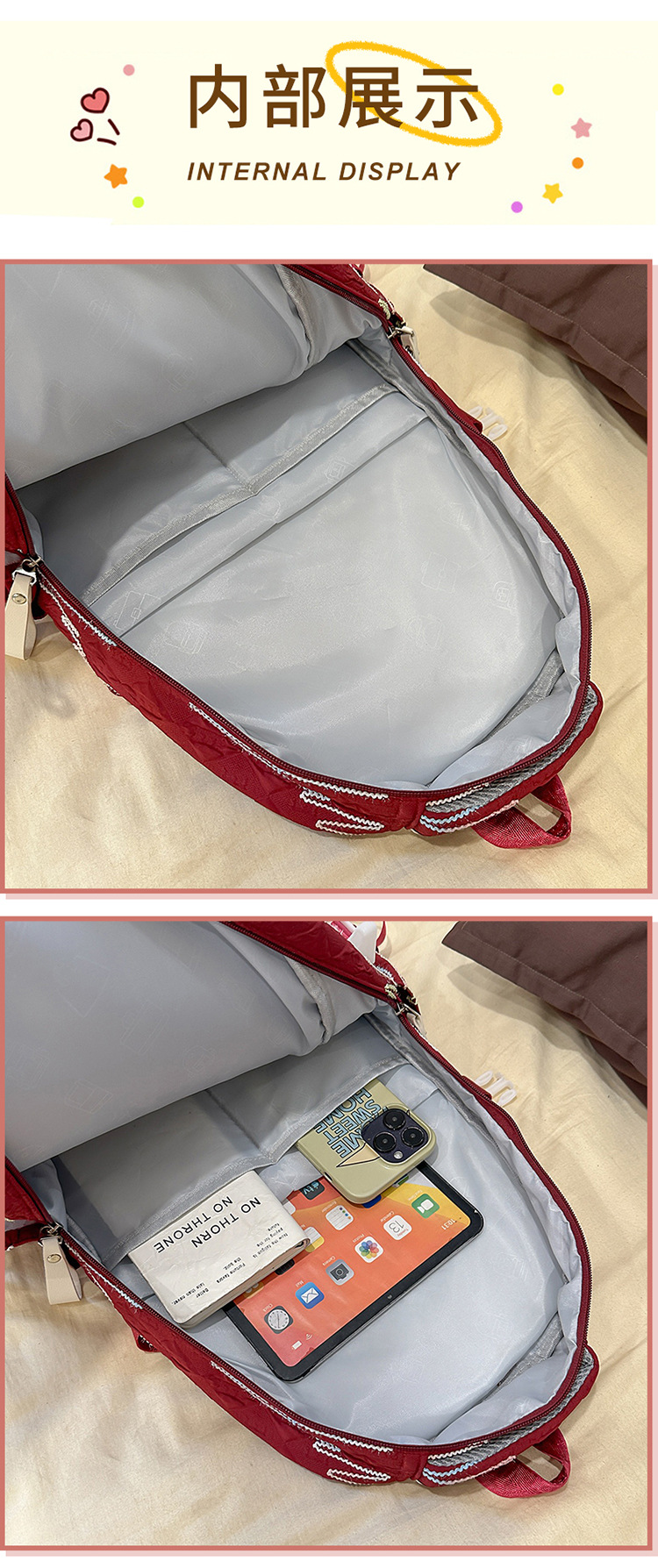 | School bag | Korean style new trendy ins-style high-value fresh sweet backpack for middle and high school students, multi-compartment lightweight large capacity backpack |