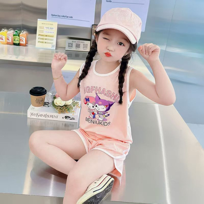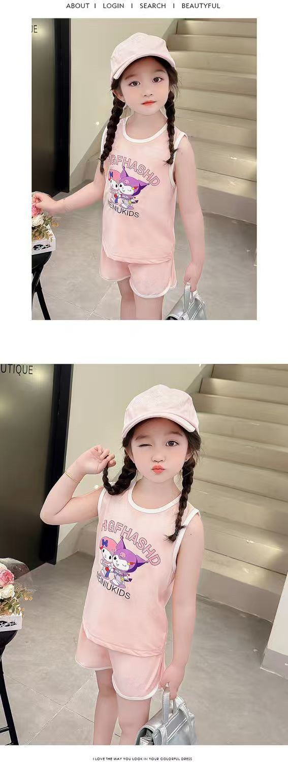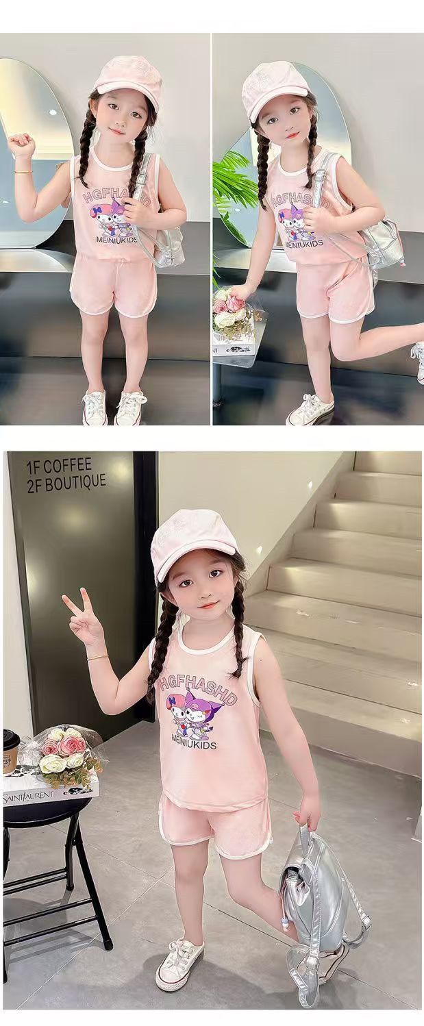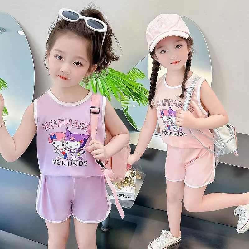 Girls' Sports Suit Summer Style Baby Girl Vest Shorts Summer Outfit 2026 New Cartoon Two-Piece Set for Little Girls