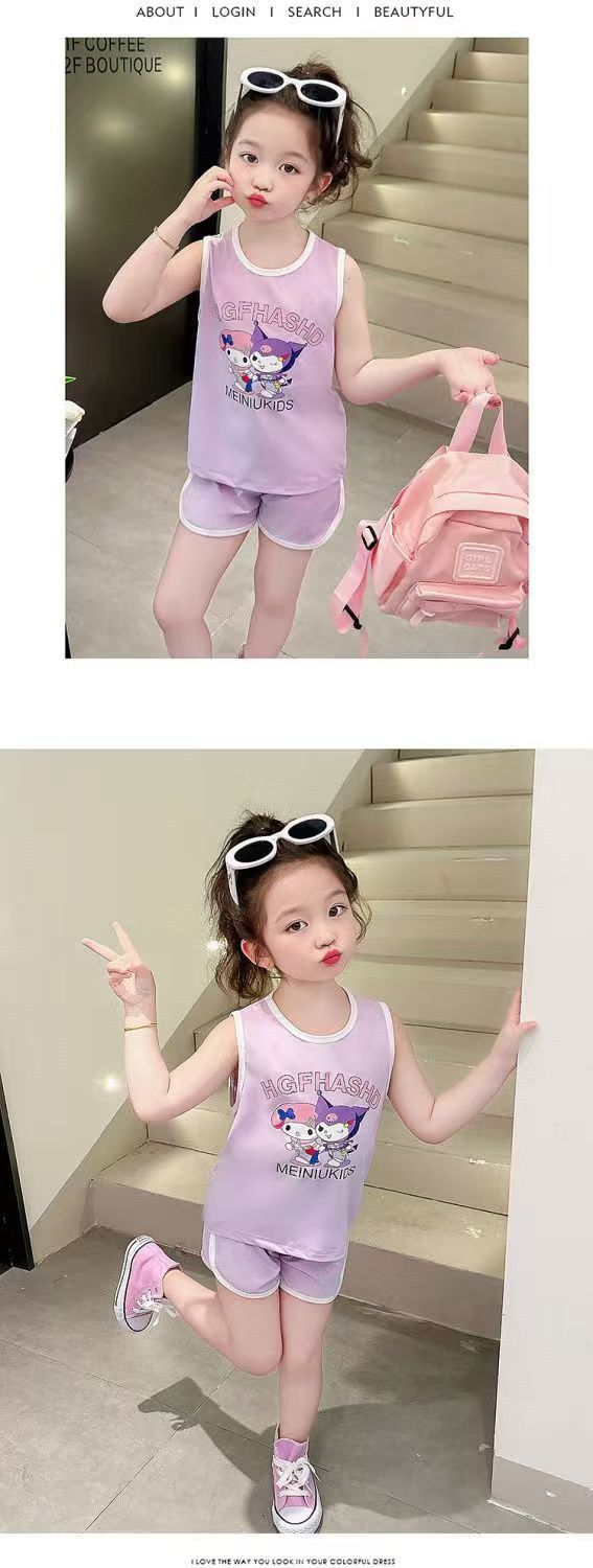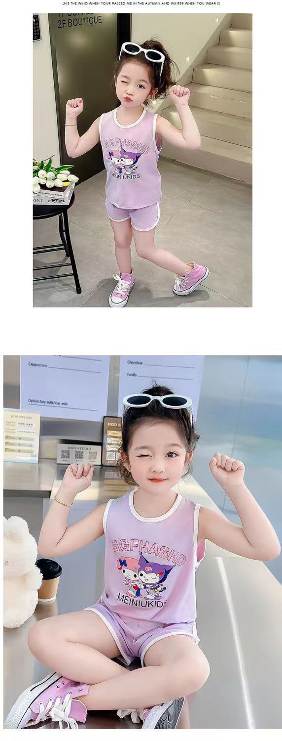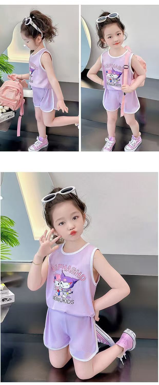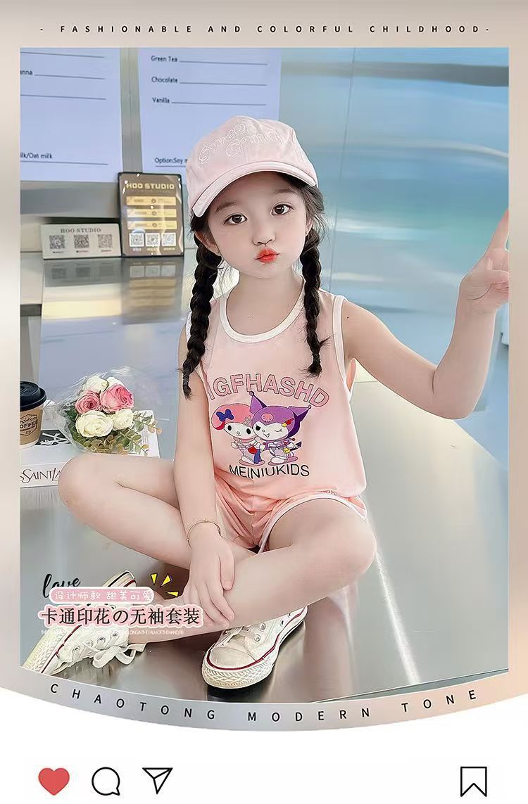Girls' Sports Suit Summer Style Baby Girl Vest Shorts Summer Outfit 2026 New Cartoon Two-Piece Set for Little Girls