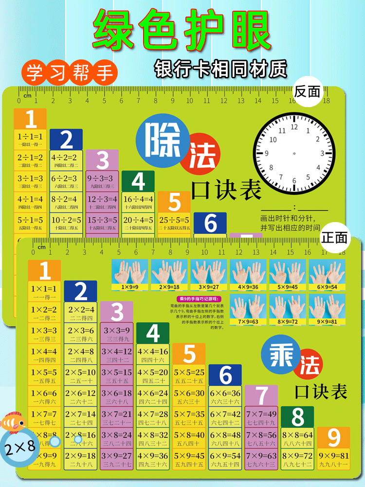 | Color | [green eye protection model] multiply and divide big cards | Color | [clock card] big card |
