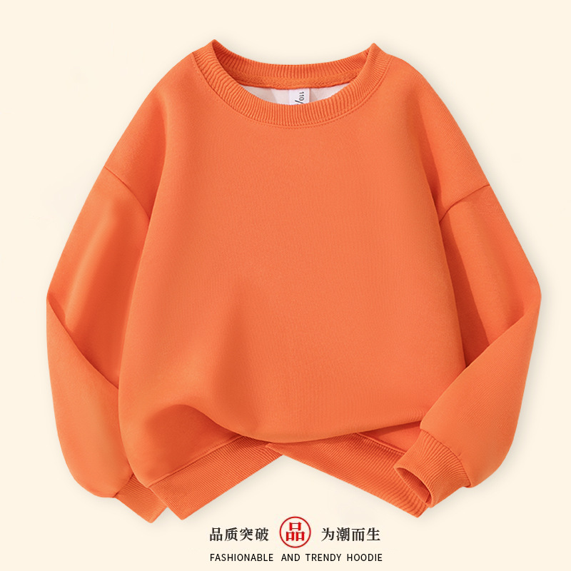 | Color | Children's round neck sweatshirt orange | Color | Children's round neck sweatshirt apricot color |