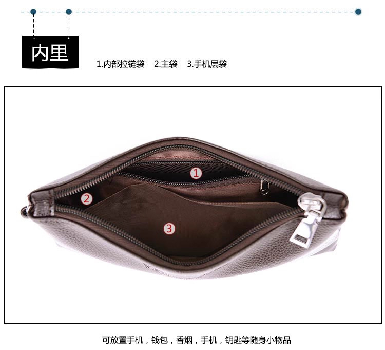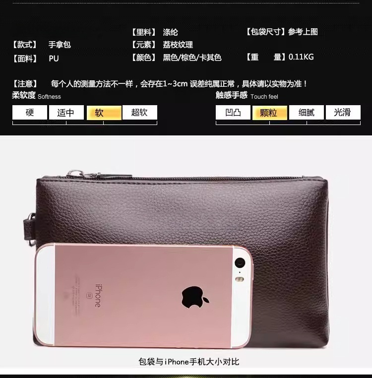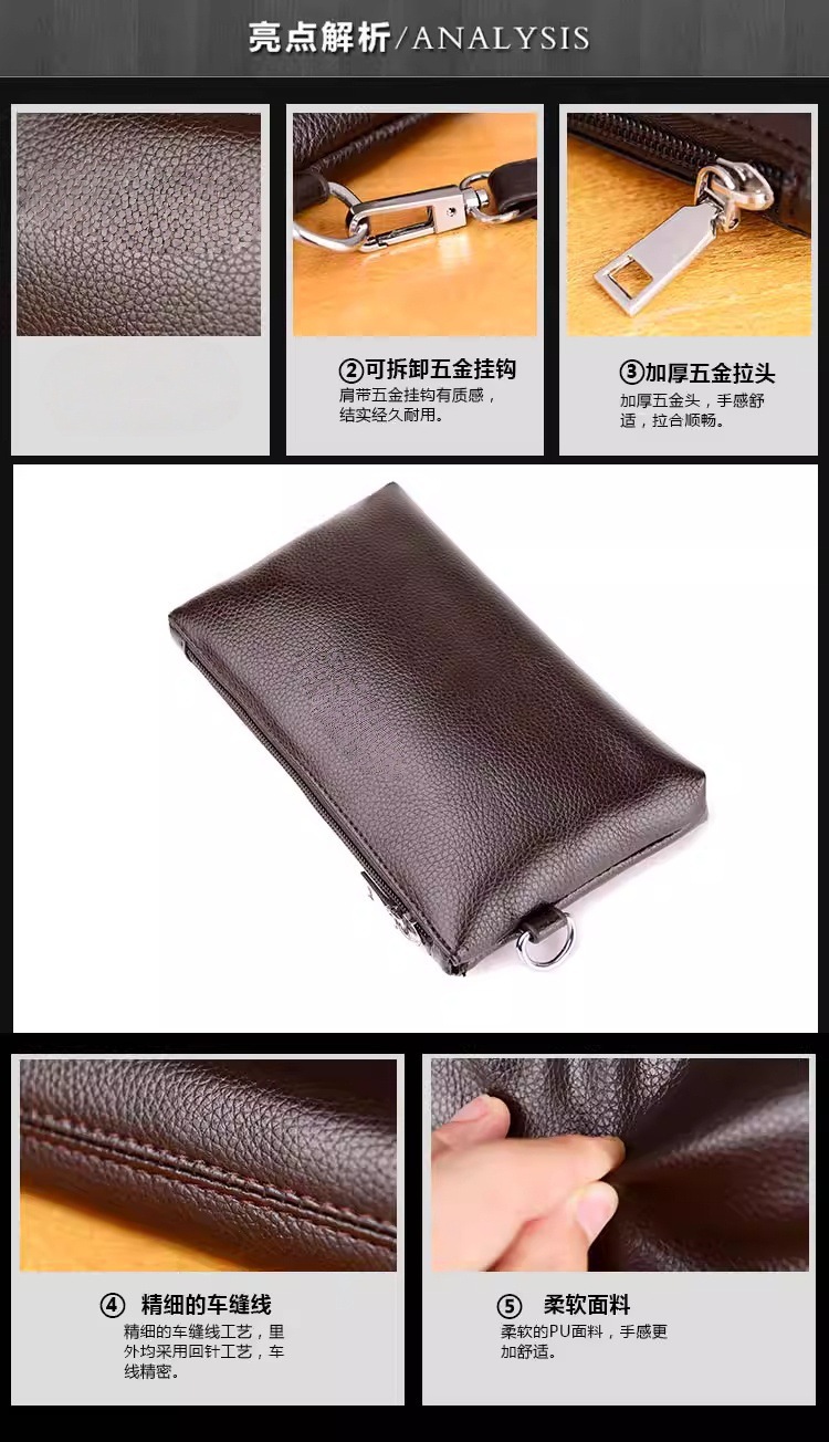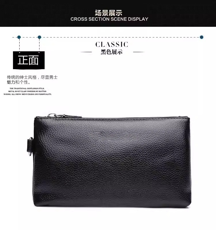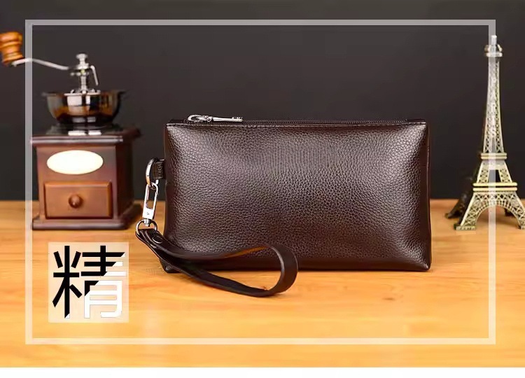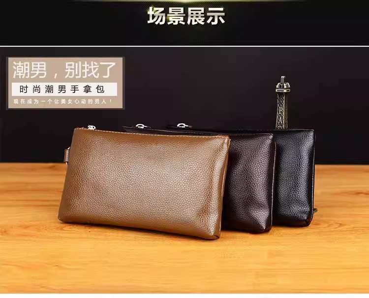 Cross-Border New Men's Clutch Bag, Portable Envelope Bag, Mobile Phone Leather Bag, Casual Small Clip Bag, Trendy Brand Hand Bag for Men