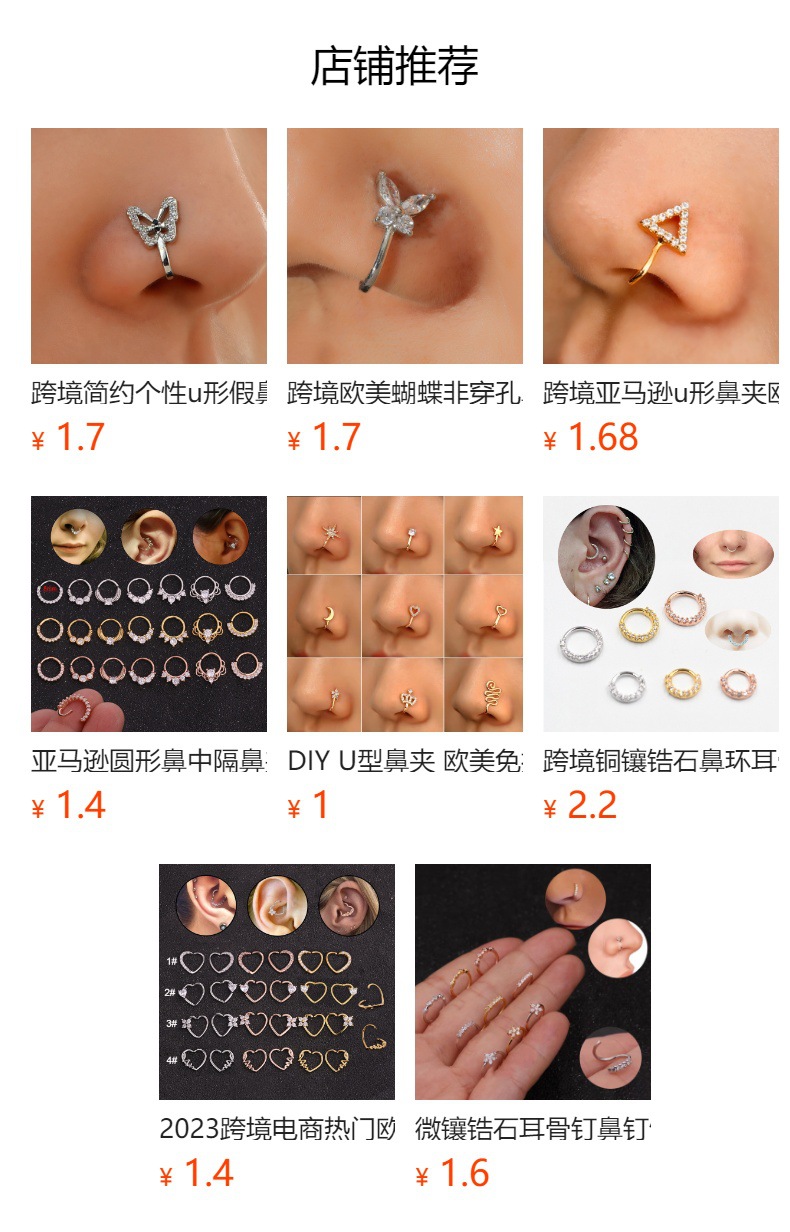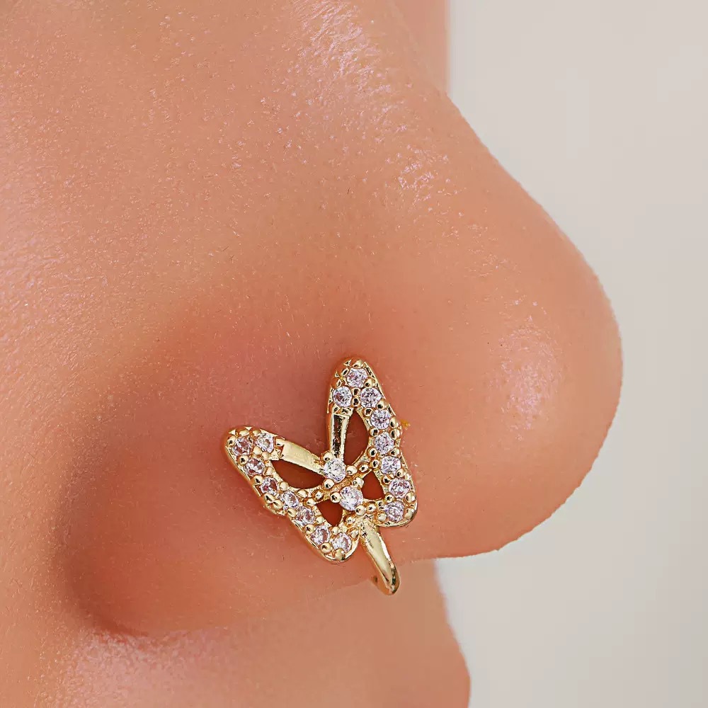 Cross-Border Fashion Personalized U-Shaped Fake Nose Ring Amazon Diamond Butterfly Nose Nail European and American Hole-Free Nose Clip Piercing Jewelry