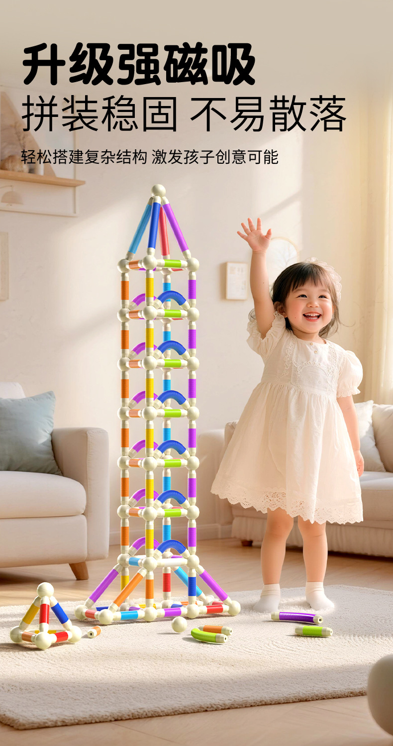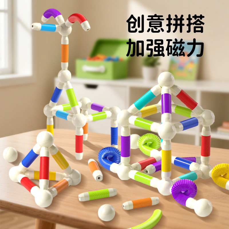 Customized Children's Versatile Magnetic Stick Retractable Magnetic Splicing Building Block Stick Baby Early Education Educational Children's Toys