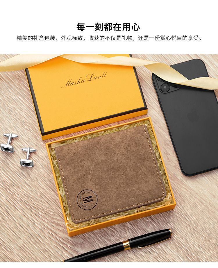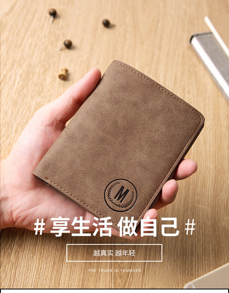 Wear-Resistant Men's Wallet Short Student Retro Matte 80% off Vertical New Style Wallet Leather Goods Manufacturer Wholesale Card Holder