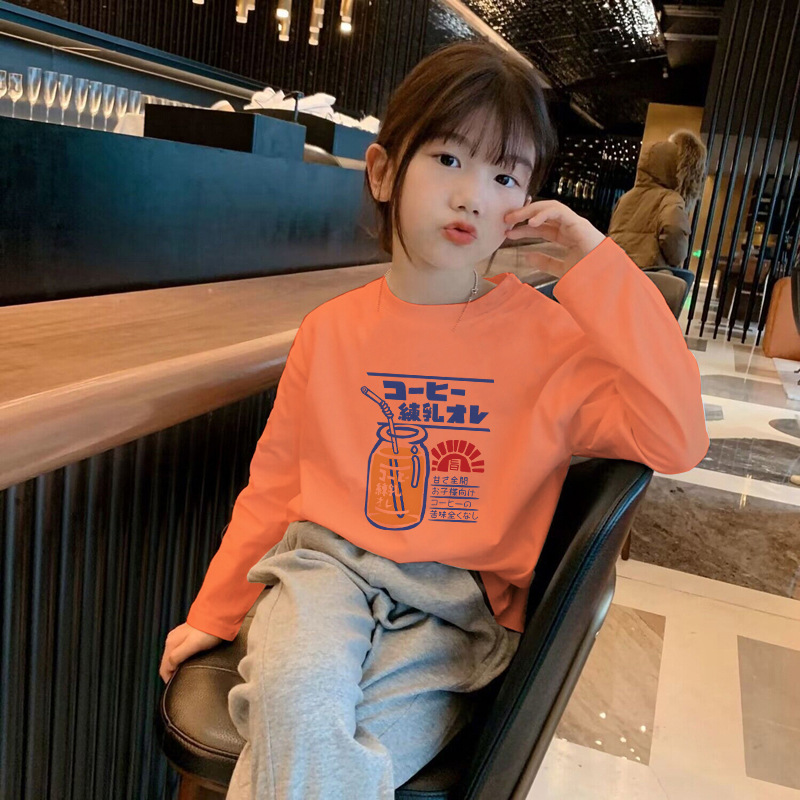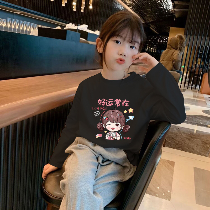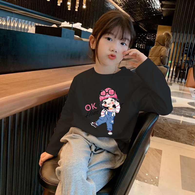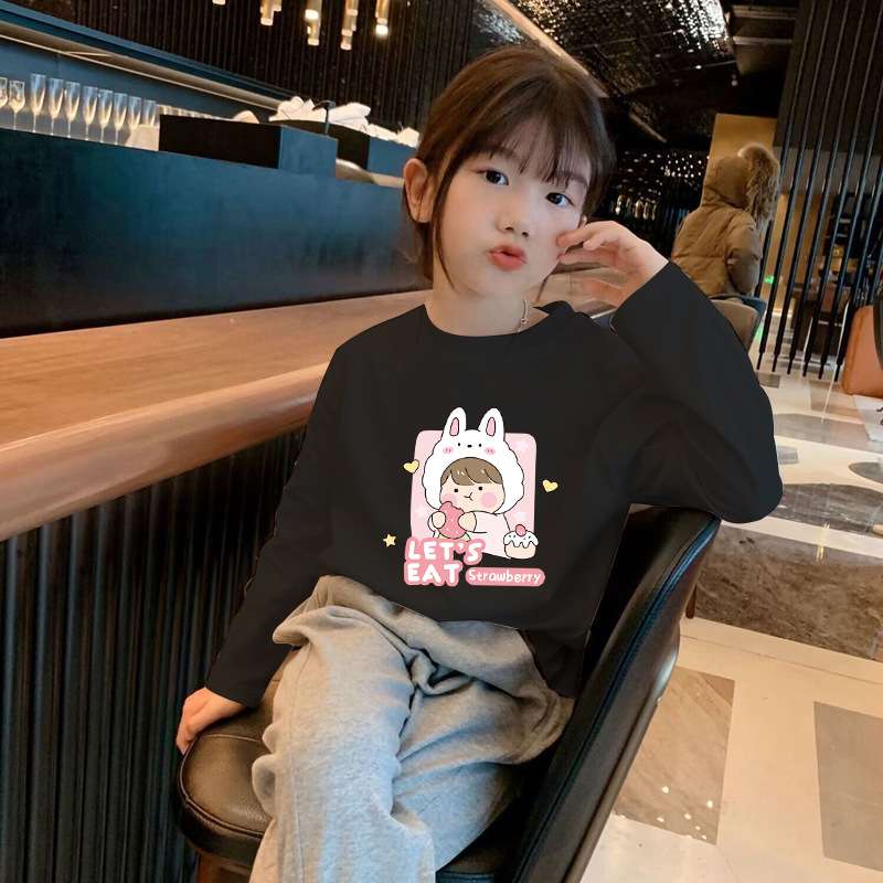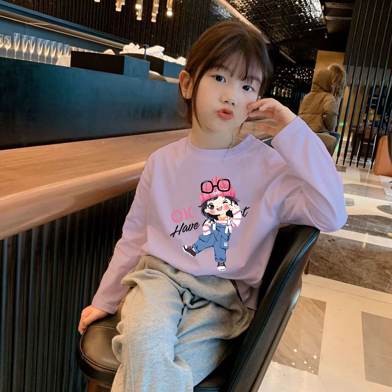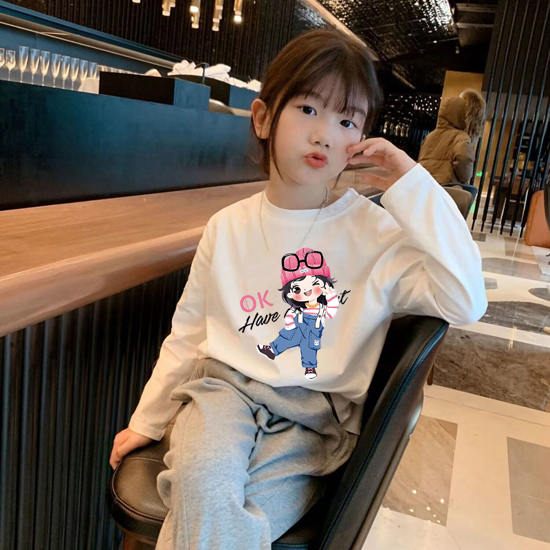 Girls' Pure Cotton Long-Sleeve T-Shirt Spring and Autumn Base Shirt 2025 New Model for Older Children, White Inner Layer Comfortable Top Trendy