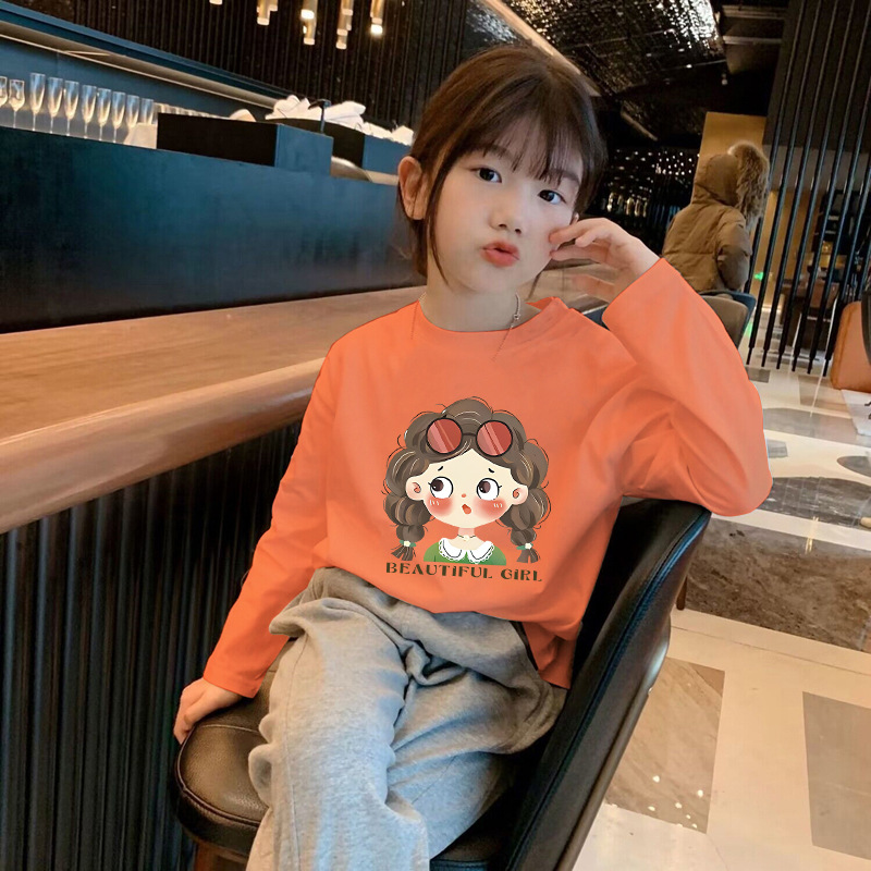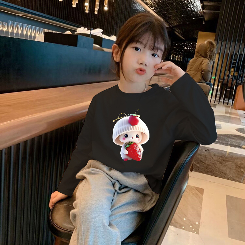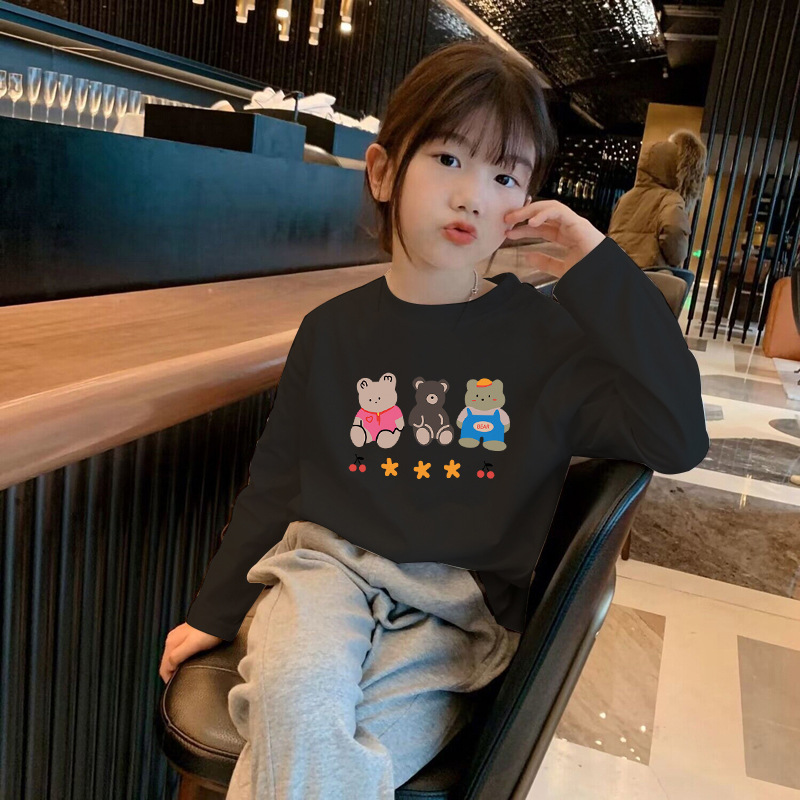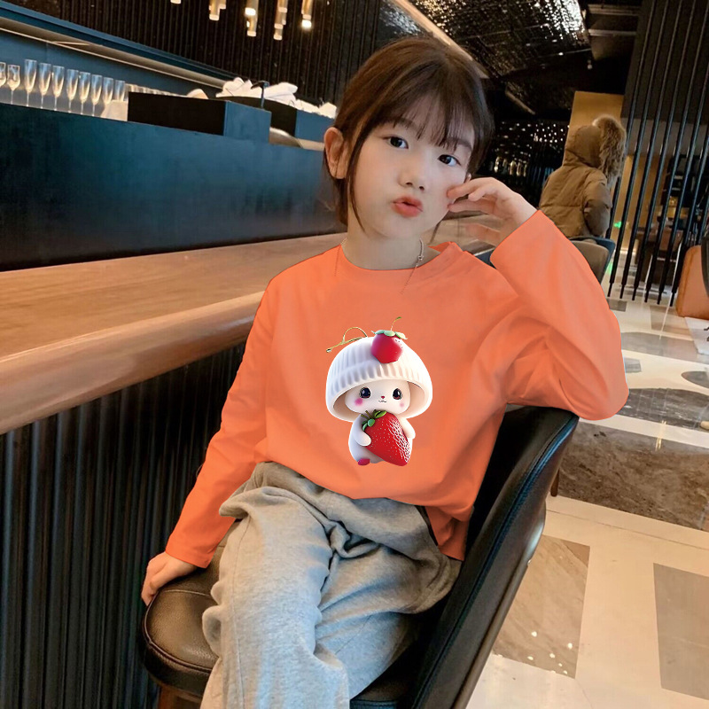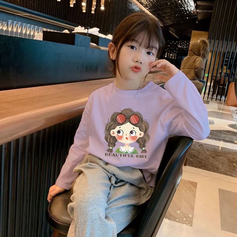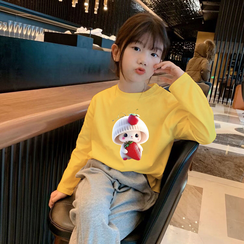 Pure Cotton Kidsren's White Long-Sleeved T-Shirt Bottoming Shirt 2025 Spring and Autum New Style Boys and Girls Baby Inner Tops Trendy