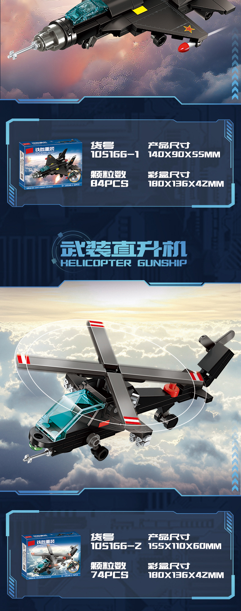 | Color | 105166-8 [heavy long-range bomber] | Color | 105166 (1-8) [8 in 1] armed helicopter |