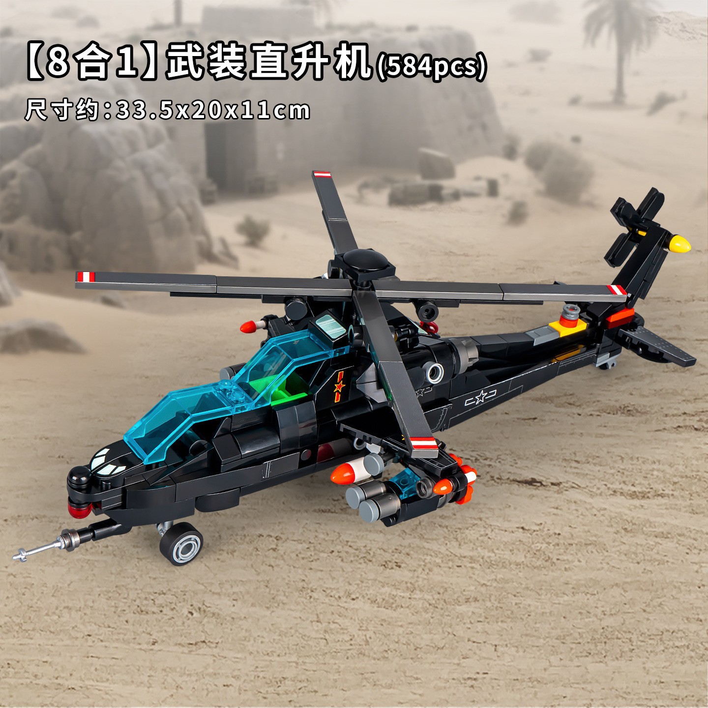 Iron-Blooded Heavy-Duty Armed Helicopter 8-in-1 Boy Assembled DIY Building Blocks Military Toy Educational Assembled Gift