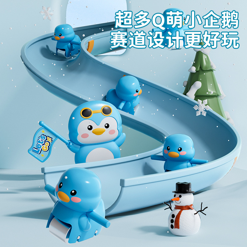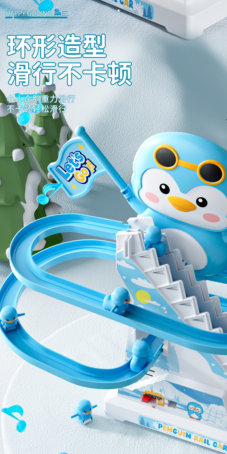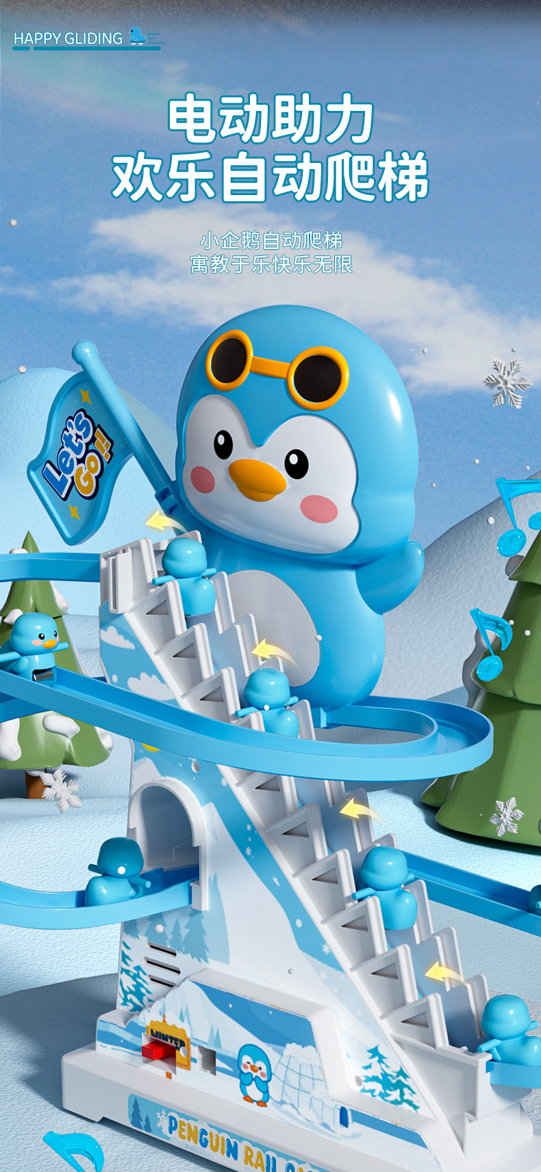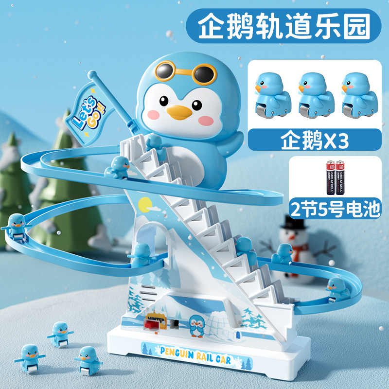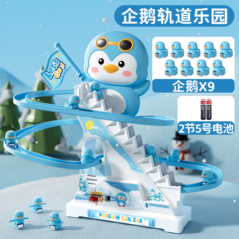 Customized Douyin Electric Little Penguin Climbing Stairs Kidsren's Educational Assembled Track Car Baby 3 Head-Up Training 6 Toys