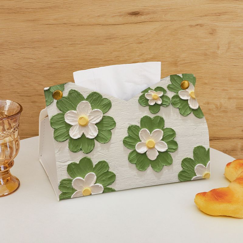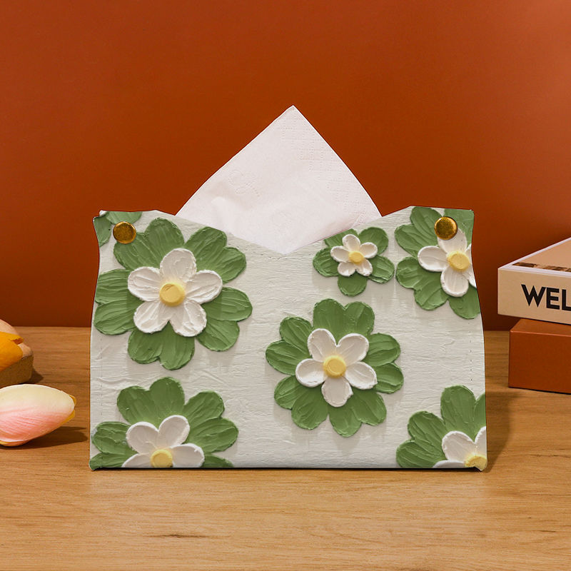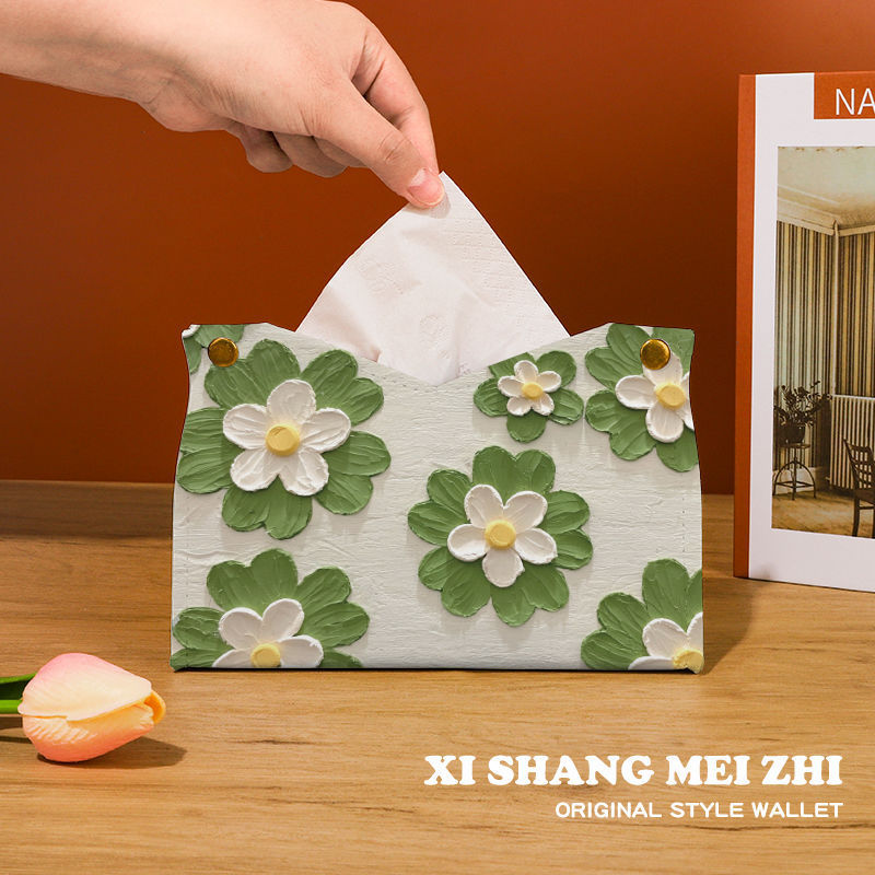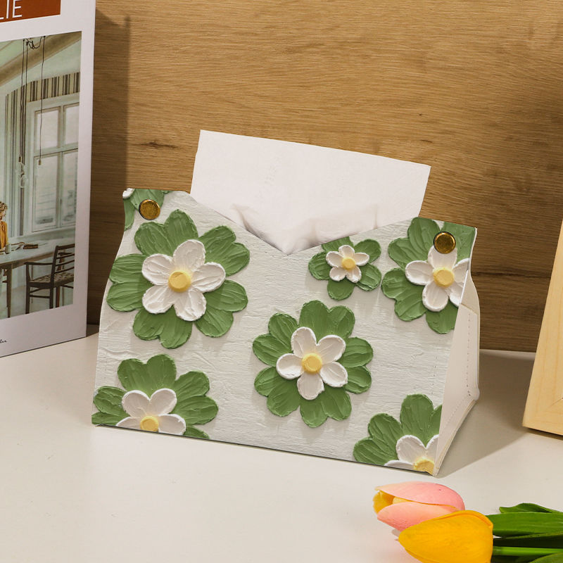 New Leather Tissue Box Oil Painting Flower Light Luxury Style Storage Restaurant High-End Living Room Office Desk Decoration Paper