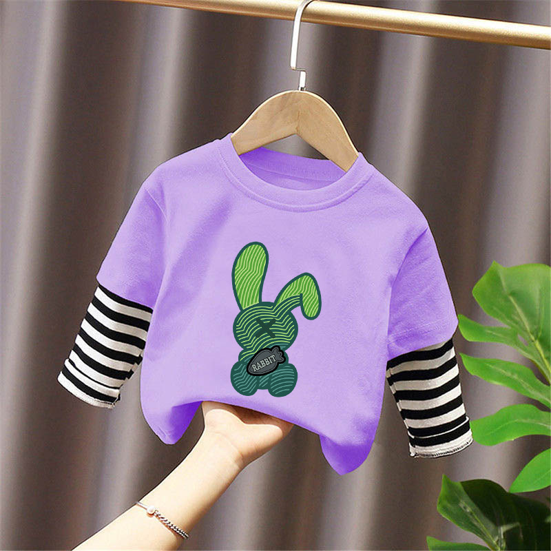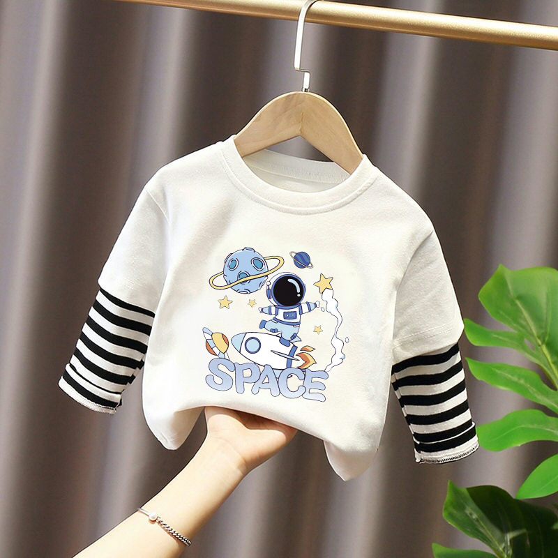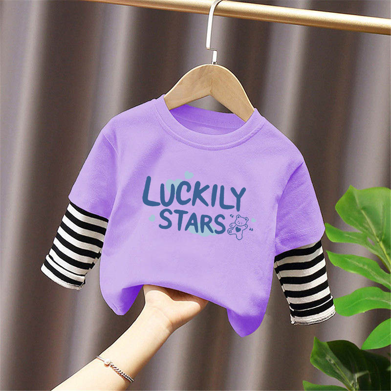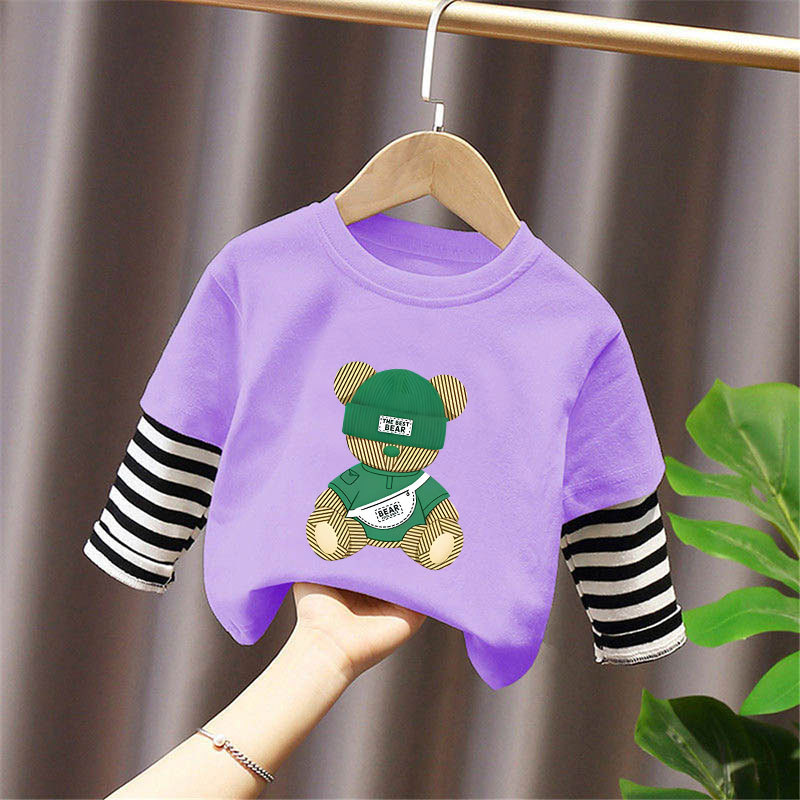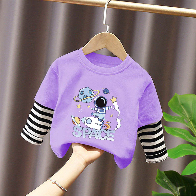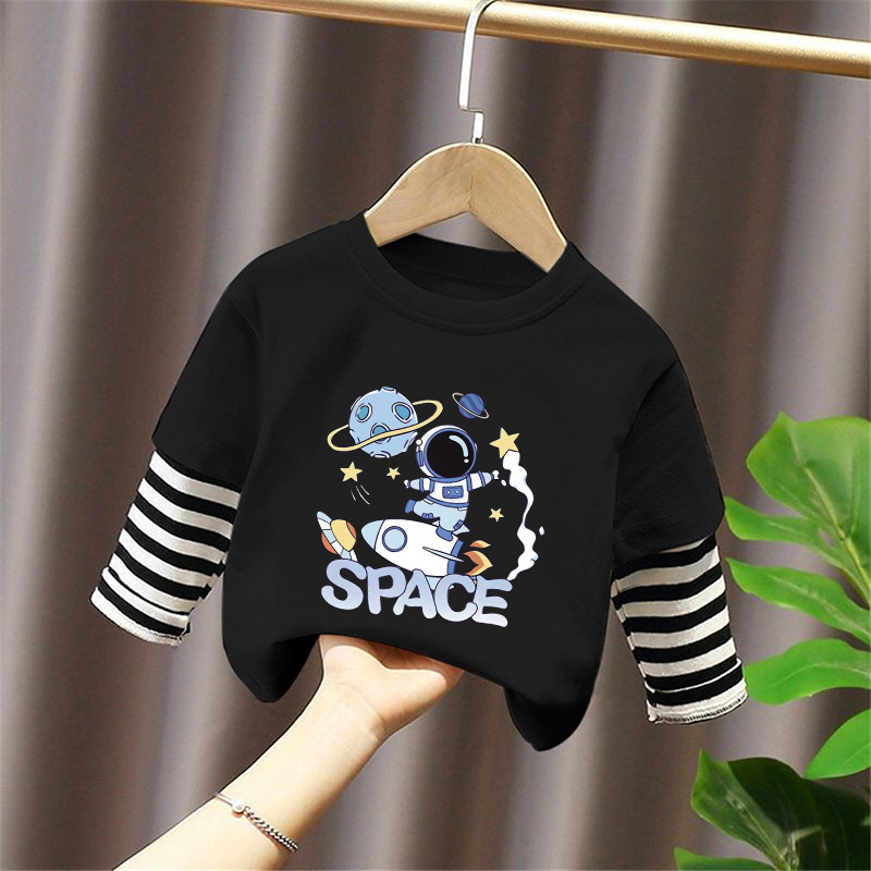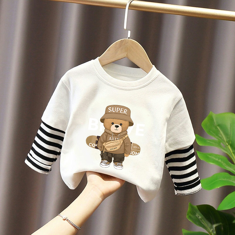 Children's Long-Sleeved T-Shirt Pure Cotton 2025 New Spring and Autum Boys' Fake Two-Piece Spliced Sleeve Tops Baby Bottoming Shirt