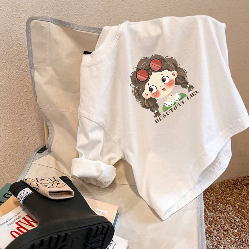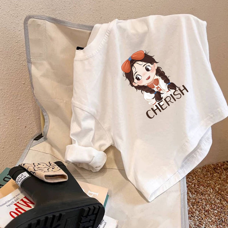 White T-Shirt Girls Spring & Fall 2025 New Long-Sleeved Pure Cotton Cartoon Cute Medium and Large Kidsren's Bottoming Shirt Tops