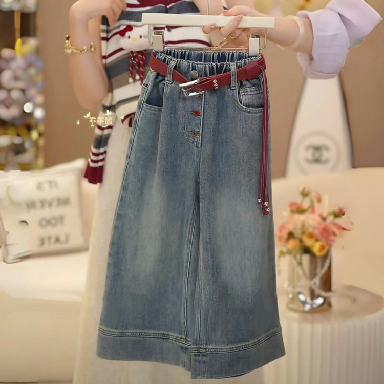 Girls' Autumn and Winter Outfit 2025 New Stylish Navy Collar Knit Sweater Cartoon Jeans Set Trendy